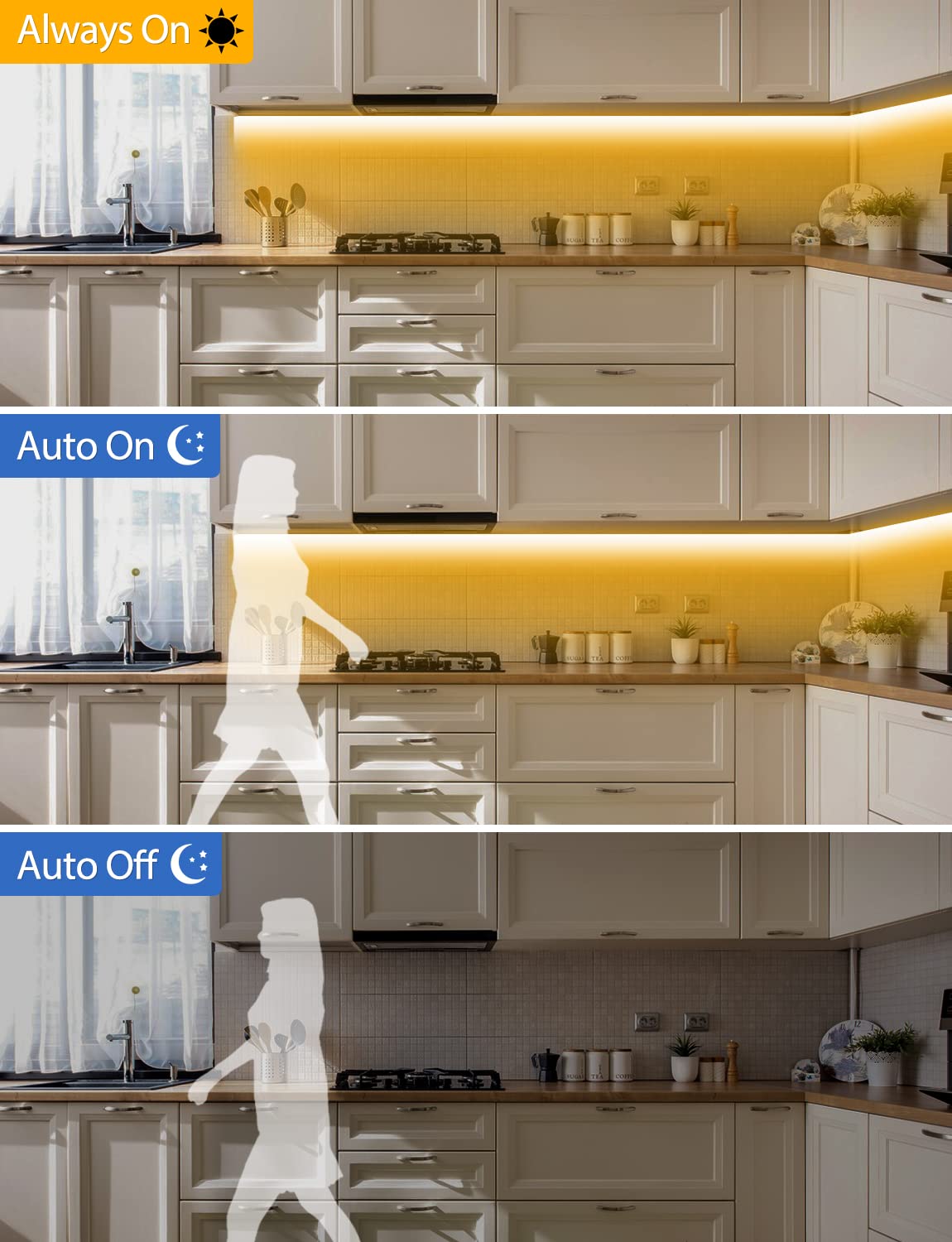 Motion Sensor Lights Indoor Under Bed Lights, Plug-In Motion Sensor Led Strip Lights For Bedroom, Maticod Warm White Under Cabinet Lights For Kitchen, Closet, Stair Night Lights, 16.4Ft No App