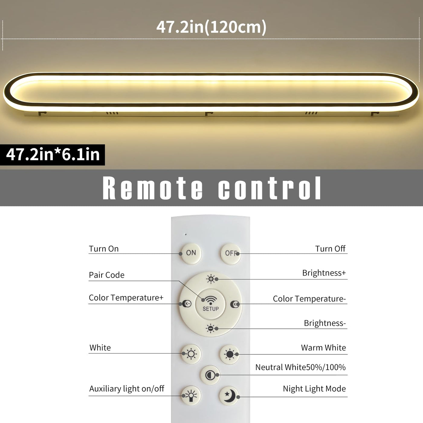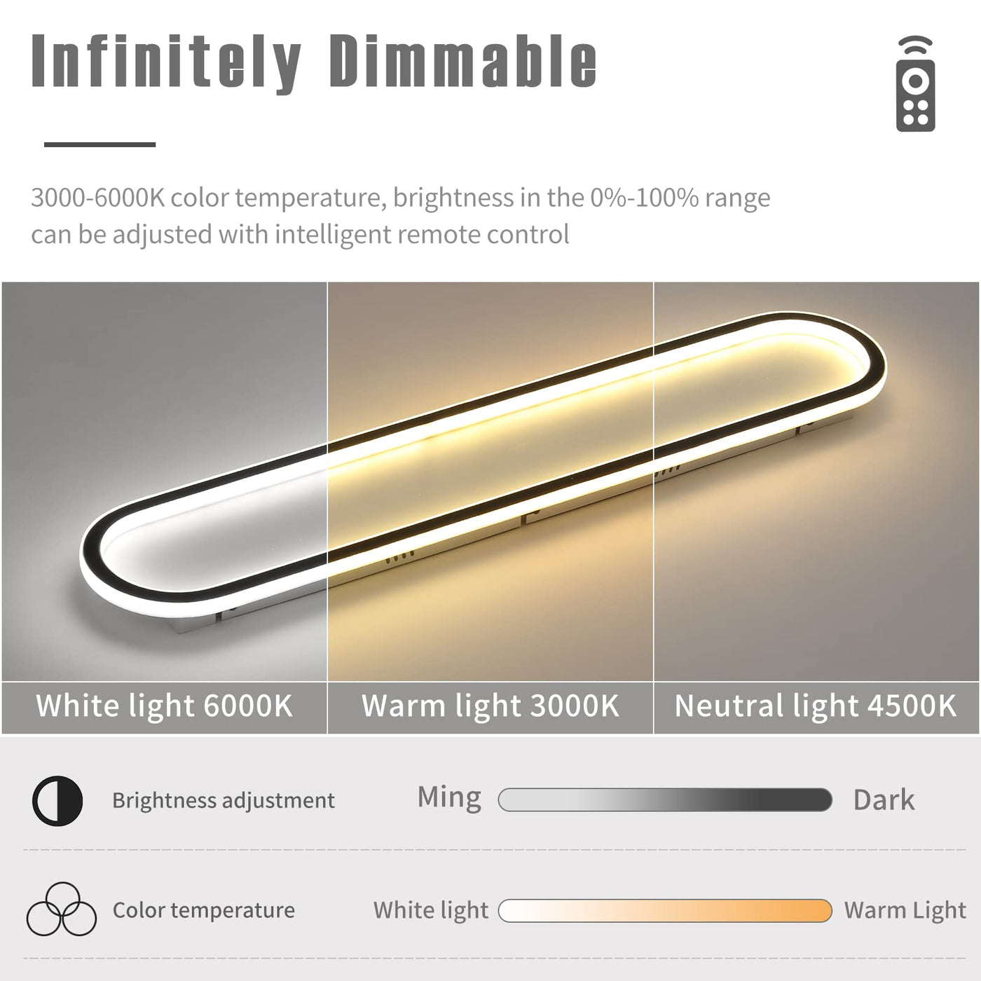 Matven Flush Mount Ceiling Light, Dimmable LED Fixture, 49IN, Acrylic, Black, for Bedroom/Balcony/Dressing Room