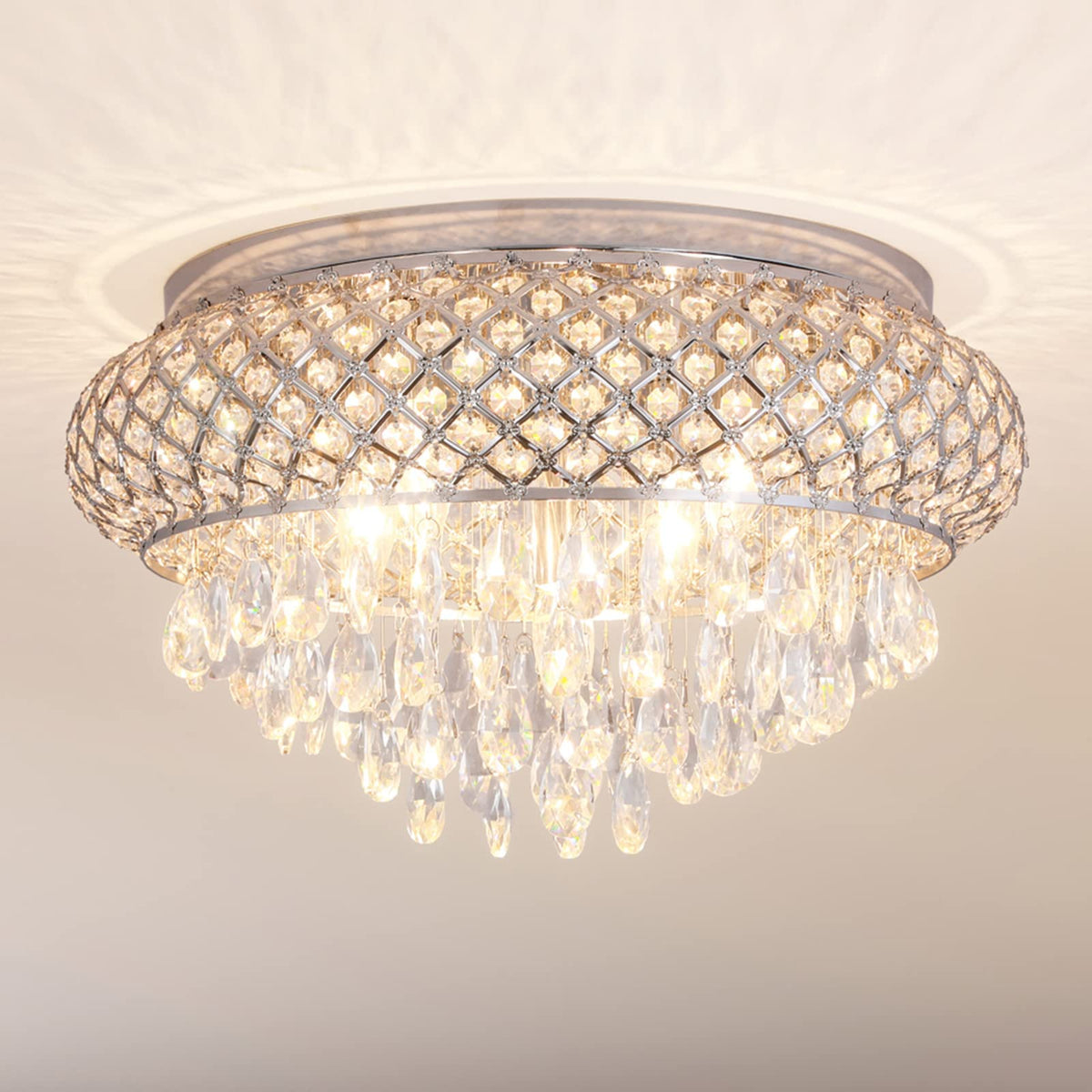 Maxax 5-Light Modern Flush Mount Ceiling Light, Large Chrome Crystal Fixture For Living Room & Kitchen