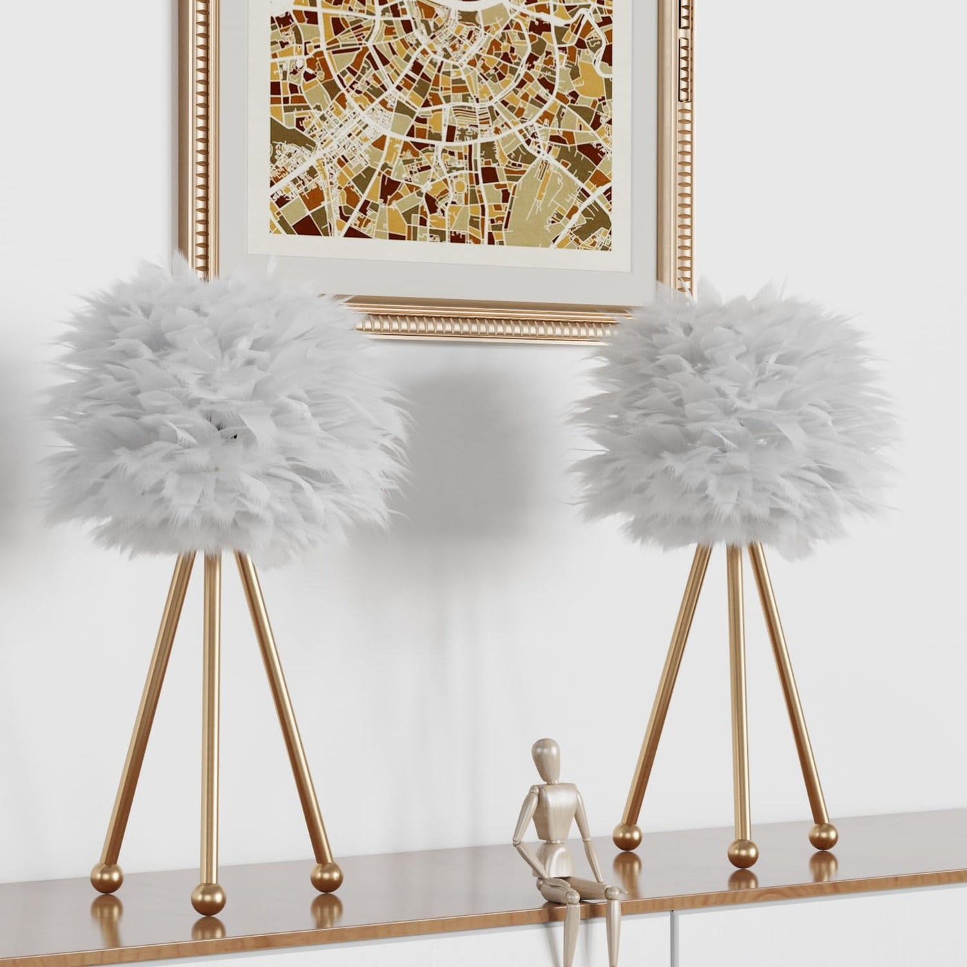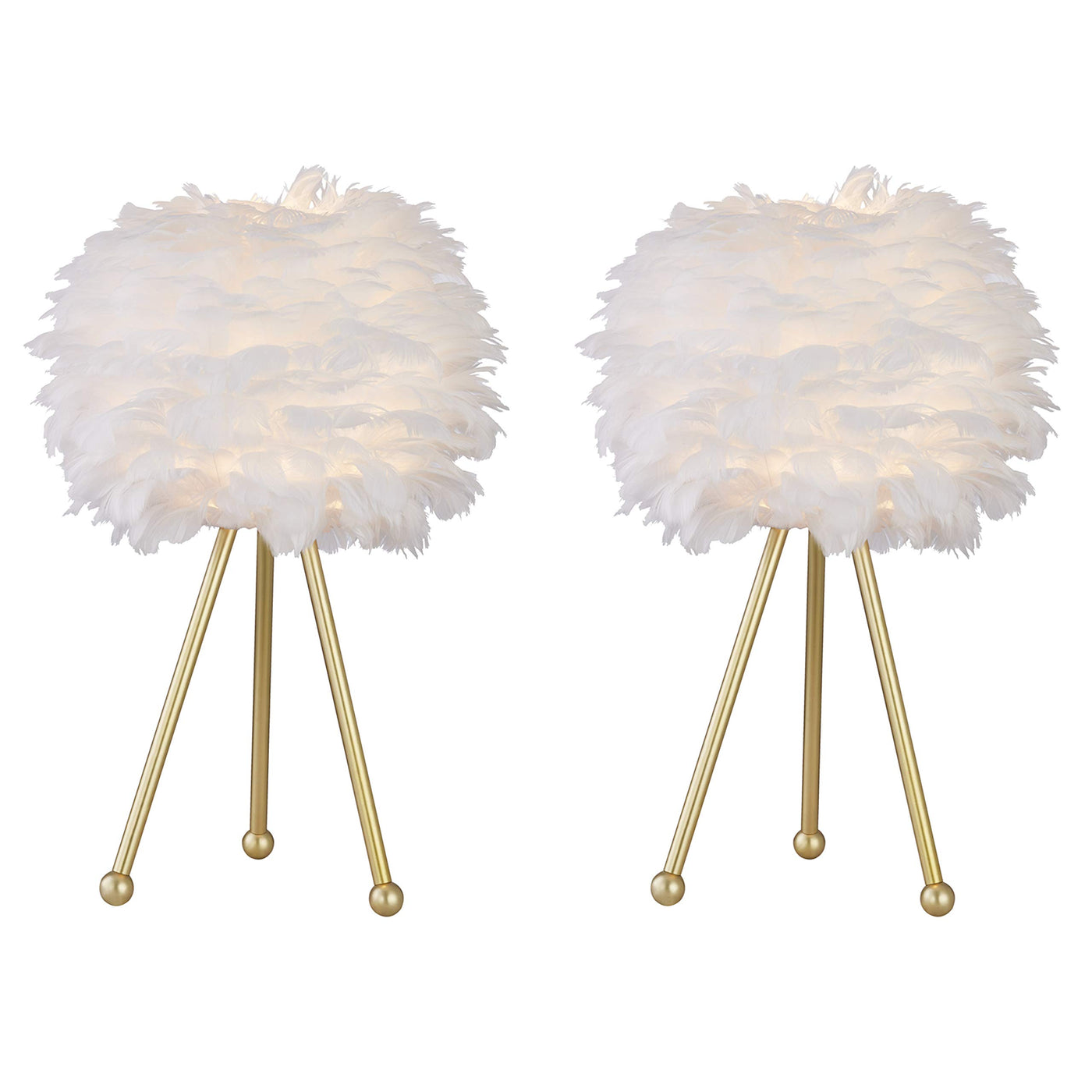 Maxax Feather Table Lamps Set Of 2 For Bedroom, 19'' Tall Tripod Bedside Table Lamps, Nightstand Lamp With Gold Finish For Bedro
