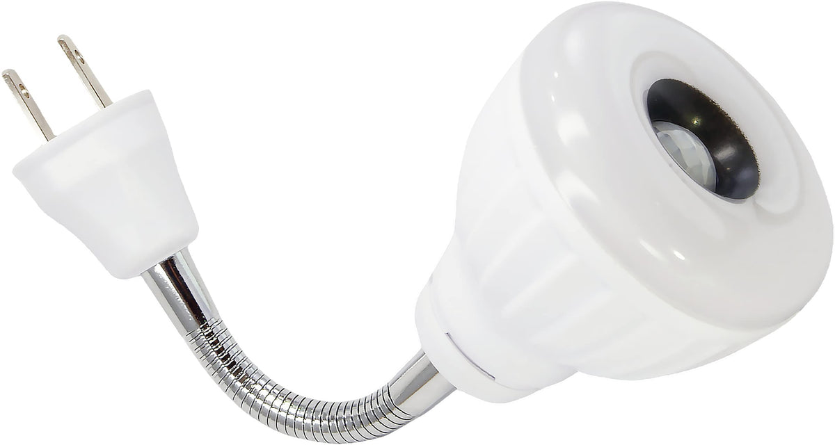 Motion Sensor LED Light With Smart Photocell Sensor Motion Sensor LED Light With Smart Photocell Sensor. This smart motion senor light is designed for direct plug into any AC outlet with a flexible arm. No wiring or battery needed at all. It provides users with an energy-efficient lighting solution for the needed areas. When the motion sensor detects movement, bright LED cells will illuminate the area. This motion LED light will stay on automatically for 30 to 40 seconds once it is triggered by motion then turn itself off. With an advanced photocell sensor built into it, this motion LED light will only be activated in darkness or low ambient light condition so it is very energy efficient with extremely low power consumption and long product life. The motion-activated LED technology provides bright and glare-free illumination for hallway, storage room bathroom, hallway, kitchen, garage etc.