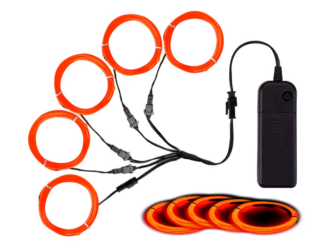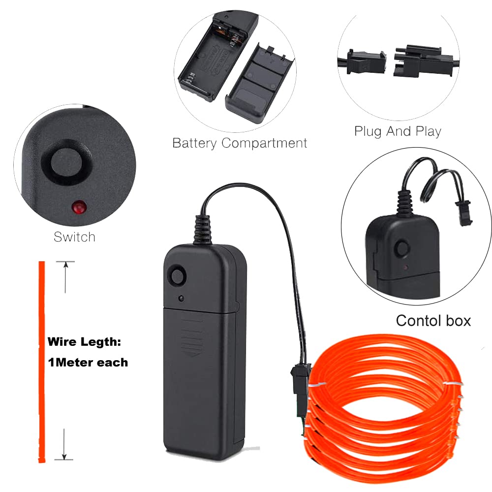 MaxLax EL Wire Orange, Noise Reduction Neon Wire Light 5 in 1 Meter, Electroluminescent Wire for Halloween Decoration, Christmas