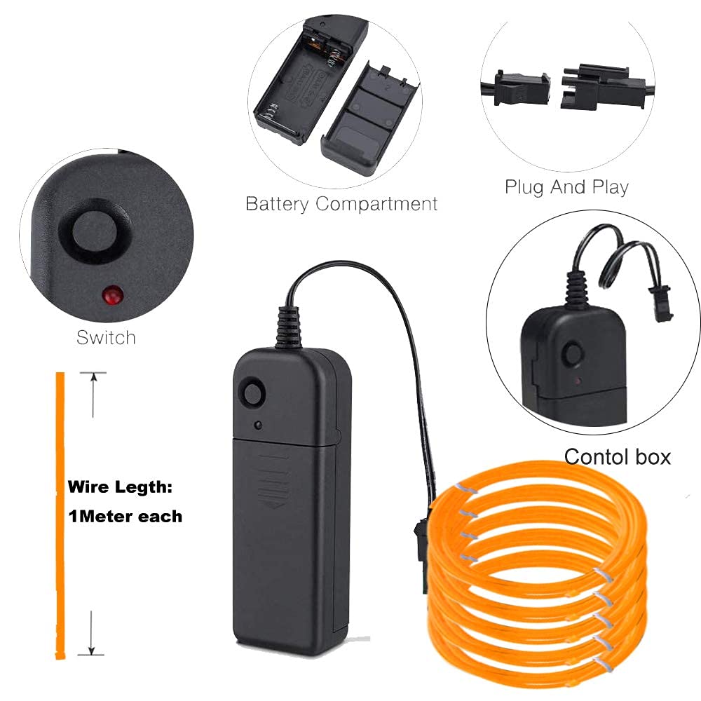 MaxLax EL Wire Yellow, Noise Reduction Neon Wire Light 5 in 1 Meter, Electroluminescent Wire for Halloween Decoration, Christmas