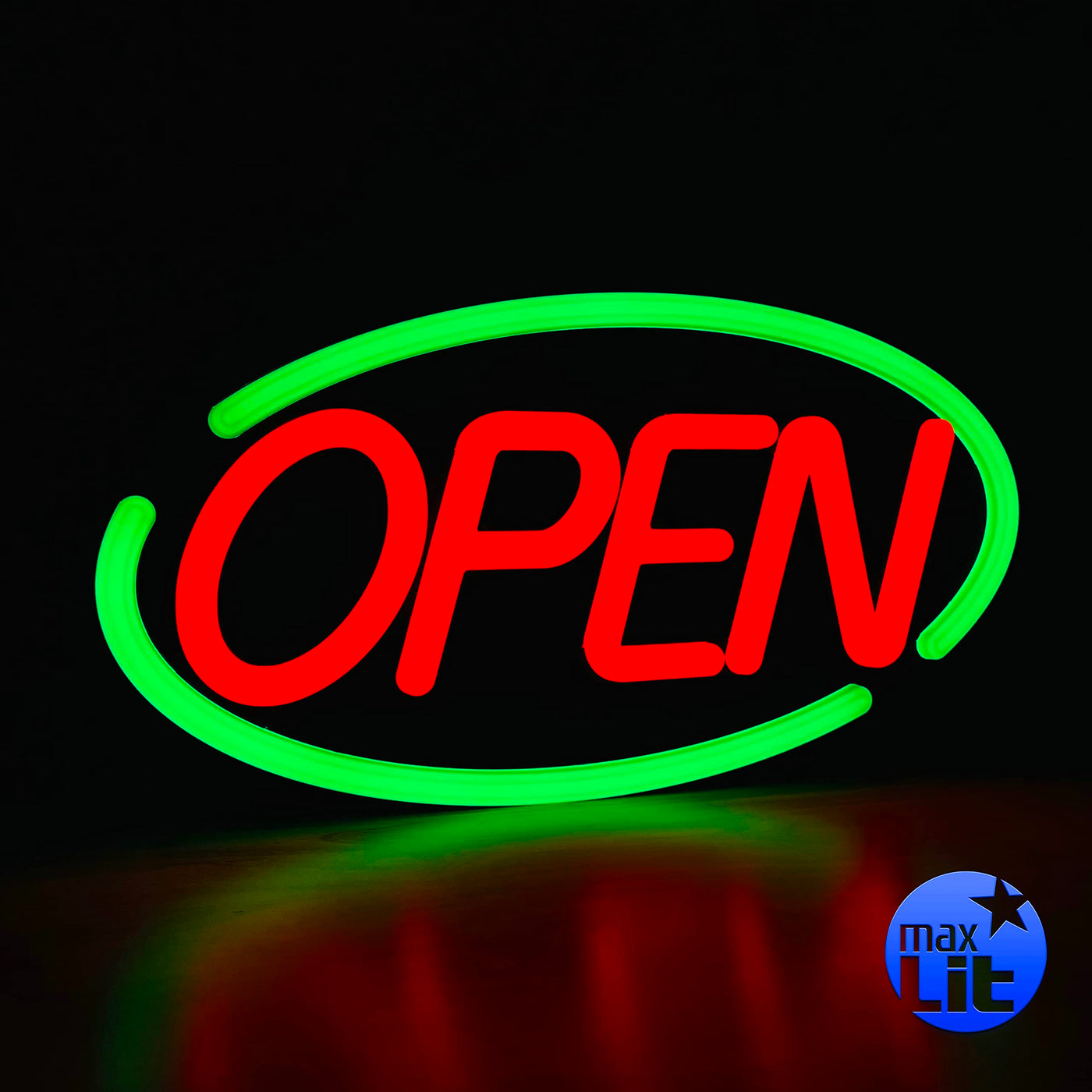 MaxLit- Oval Shaped LED Tube Neon Open Sign -Large Size -24 X 12 (Green/Red)