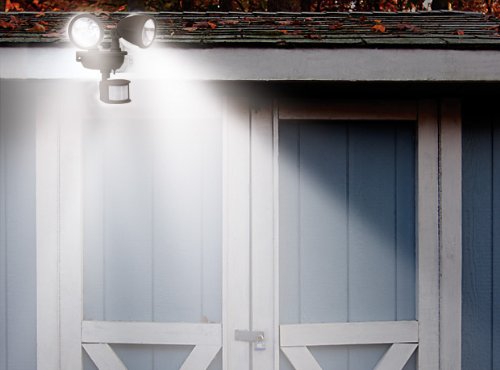 The MAXSA 44216 solar powered, motion-activated outdoor security spotlight ensures that you always have light without using any electricity. You can reposition the heads for wide illumination. The LEDs produce 220 lumens and never burn out or need changing. This spotlight motion detects 10-40ft away. The 3 rechargeable AA Ni-MH batteries can provide up to 90 one-minute cycles when fully charged by sunlight. This light has low energy costs and low environmental impact with an amazing amount of light and no electrician is needed. It is perfect for entryways, walkways, sheds, patios, balconies, decks, steps, garages, carports, and backyard and farm sheds.