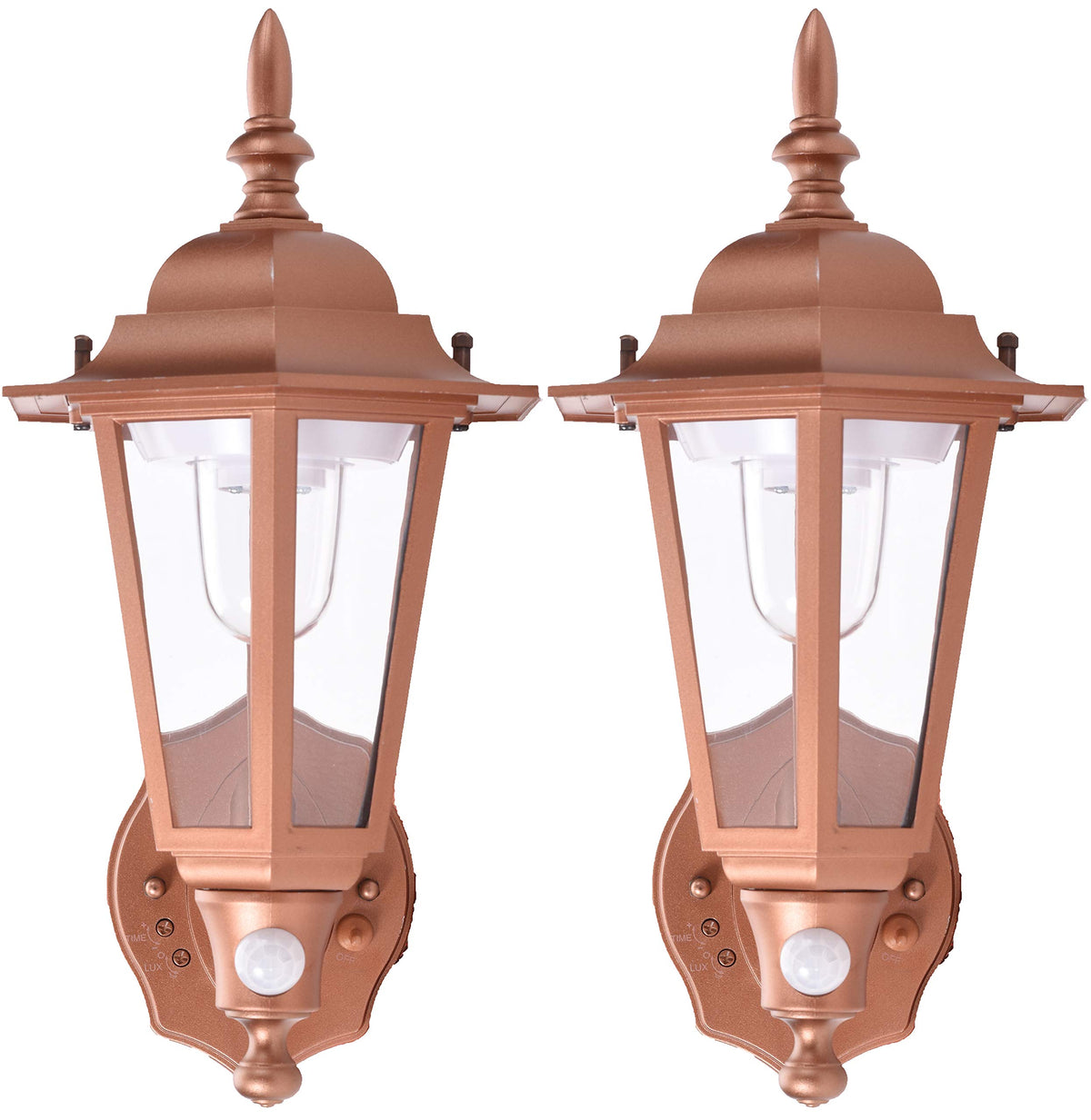 This 2-pack of bronze Battery Powered Motion Activated Plastic LED Wall Sconces from MAXSA Innovations is ideal for porches, doorways or around the house. Beautiful and classically designed, looking as good in the daytime as they do at night, they can be mounted anywhere with no need for an electrical outlet. The motion activated function helps to dissuade intruders on your property at night, while providing convenient lighting for you as well. Simply identify the ideal location to mount the light. Then, use the included hardware to attach the back cover to the chosen surface. 2 super bright surface mount LEDs produce a cool white light and have an estimated life of 30, 000 hours. A built-in motion sensor automatically turns the light on when movement of a heat source is detected. The light will remain on while motion continues to be detected. Built for easy installation, unobtrusive size, and no maintenance, this sturdy wall sconce will be a beautiful addition to your home.