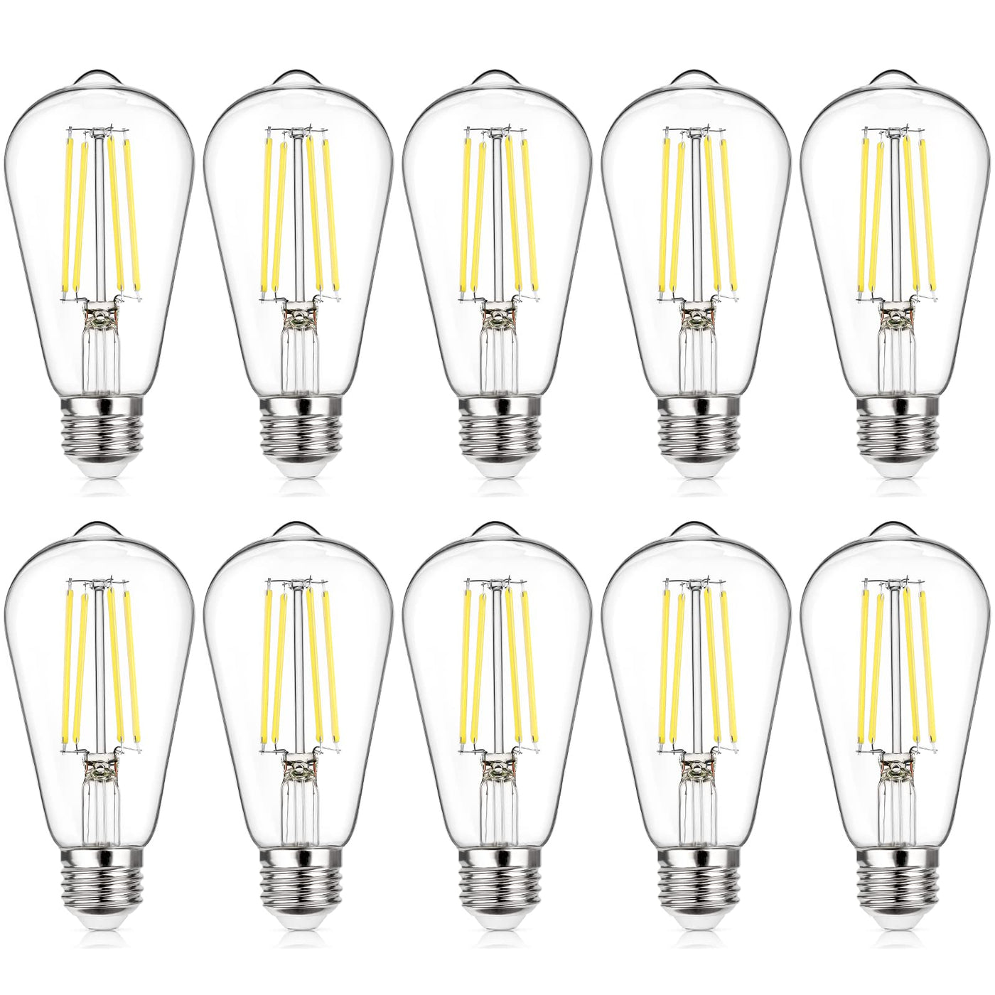Maxvolador 10-Pack Vintage Led Edison Bulb Dimmable 60W Equivalent 850 Lumens, 6W Edison Light Bulbs 5000K, Antique St58 Led Filament Bulb E26 Base