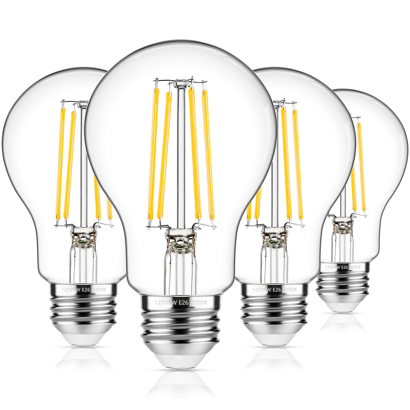 · 4 x A19 LED Filament Light Bulbs 3000K