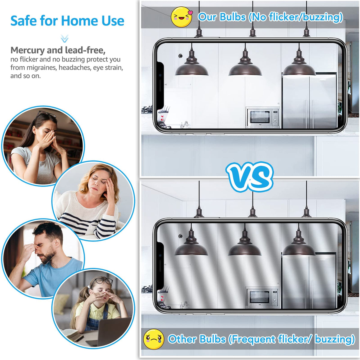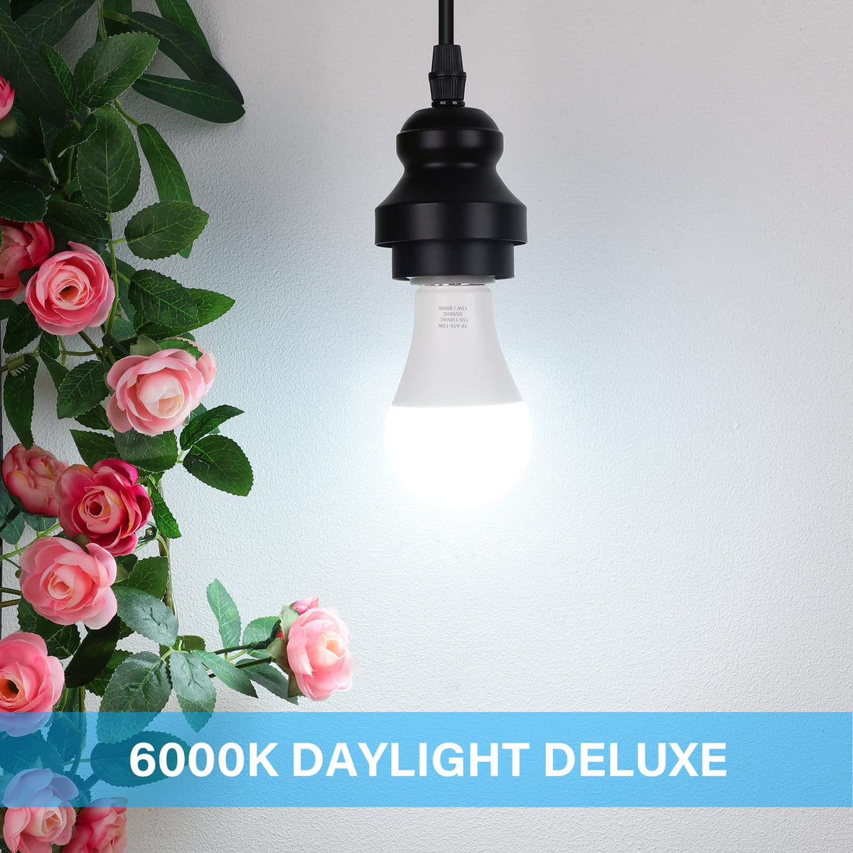 12Packs 6000K Daylight Deluxe LED BulbBrighten up every corner of your home1. High color Temperature100W LED bulb with 6000k daylight deluxe emit over 1500 lumens stable brightness. Ideal for workspace cand corridors.2. No Flicker StrobeEach bulb is stict tested before ship, no need to worry about the problem you suffered before with other bulbs such as flicker, strobe, glare and color rendition. Healthy for every member of your family.3. High cRIWith 85+ cRI can protect the natural and reality of the color .Ideal for spaces that require bright light.4. Save Energy & MoneyReplaces 100W incandescent bulb with 13W LED bulb, only cost 1.32 dollors per year (based on 3 hours use per day),Up to 90% energy saving.Immediately trim down the cost of your electricity bills by using our energy-saving A19 LED light bulbs. making it an economical alternative to incandescent bulbs.Product Specifications6000K Daylight Deluxe1500 Lumens100-125W Equivalent25,000+ Hours Lifespan100-130VAcE26 Medium baseNon-DimmablecRI85+