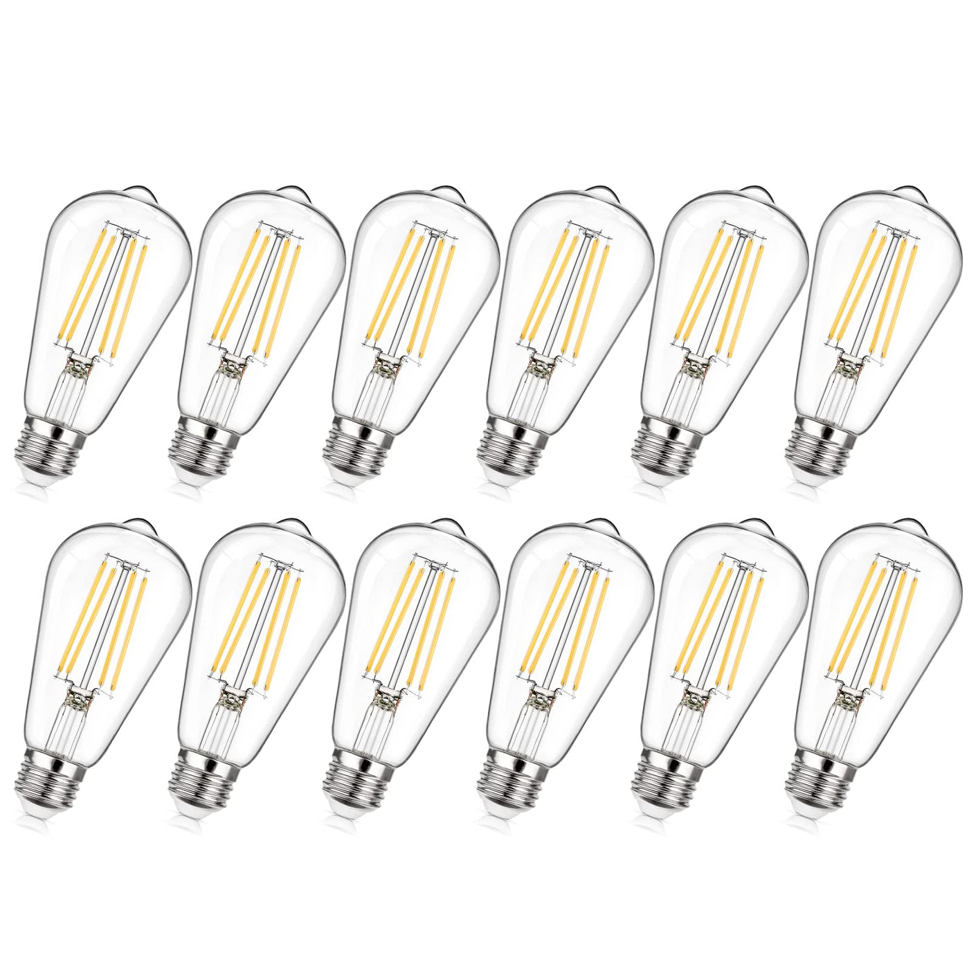 Technical Specifications: Lighting Technology: LED color Temperature: 3000K Soft White Bulb Shape: ST58 IndoorOutdoor: Indoor Light Bulb Base: E26 Medium Base(can be directly screwed into most light fixtures, such as pendant lights, chandeliers, vanity light fixtures, wall lanterns, floor lamps and table lamps) Wattage: 6W(60W Equivalent) Light Output: 850 Lumens color Rendering Index (RA):85+ Average Life: 25000+ Hours Dimmable: Smooth dimming form 100% to 10% brightness Beam Angle: 360 Degree Package contents: 12 x LED Light bulbs br >1 x User Manual