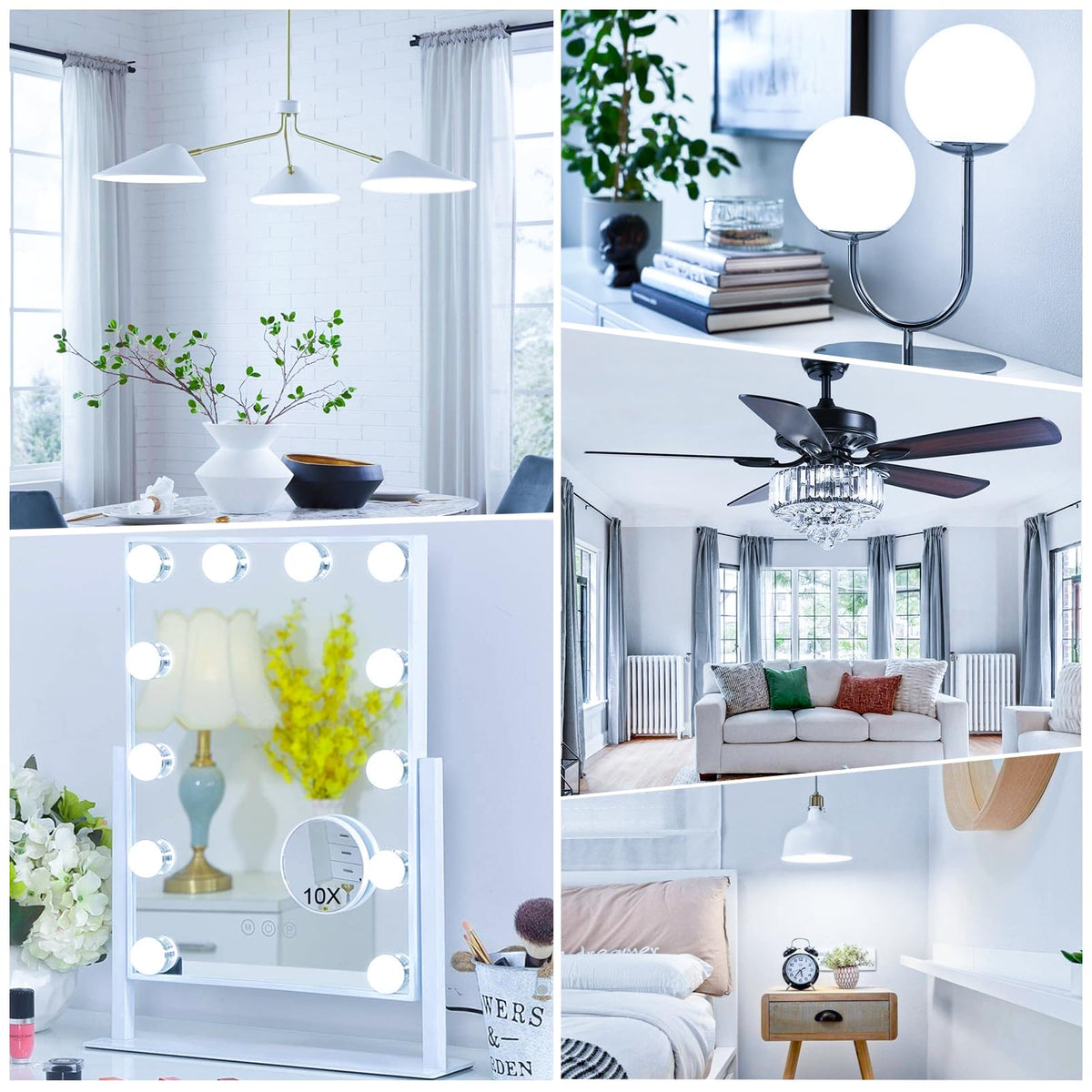 Q: What is the color temperature of these ceiling fan bulbs?A: These bulbs emit a cool white light at a color temperature of 6000K, providing bright and vivid illumination.