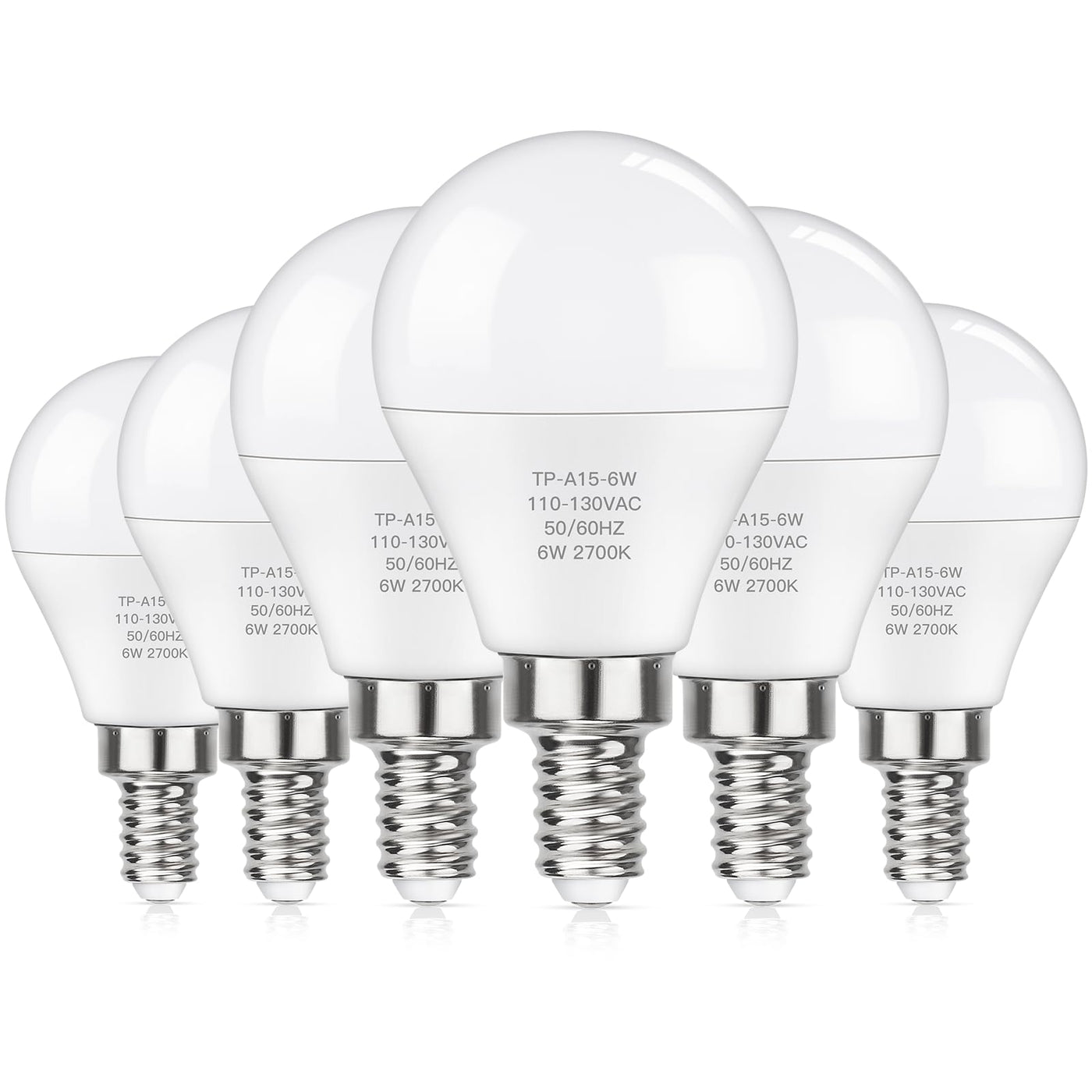 Maxvolador E12 Led 60W Equivalent Warm White 2700K Ceiling Fan Bulbs, 600Lm Cri 85+ Small Base Candelabra Bulbs, 6W Non-Dimmable, Pack Of 6