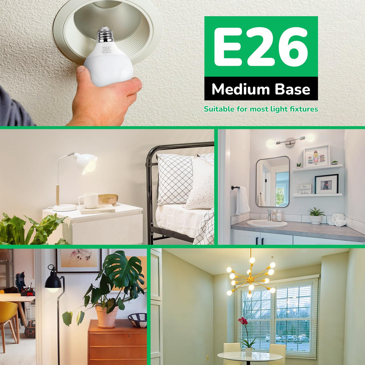 Standard E26 Base: These bulbs feature a standard E26 medium base, ensuring compatibility with most household fixtures, including vanity lights, chandeliers, pendant lights, table lamps, and floor lamps.