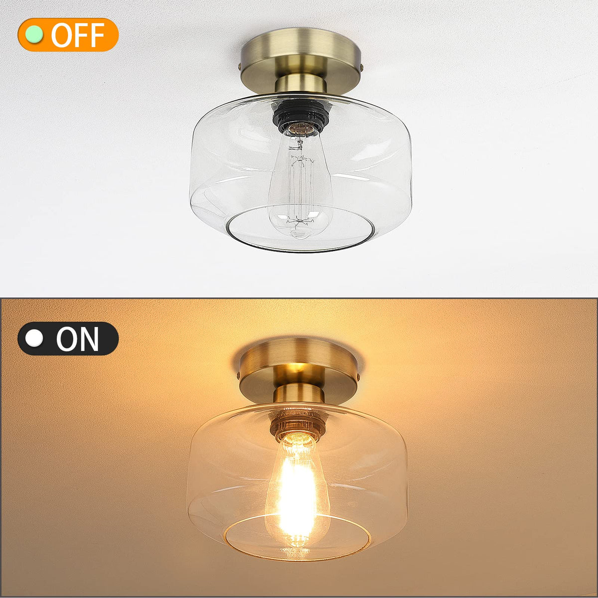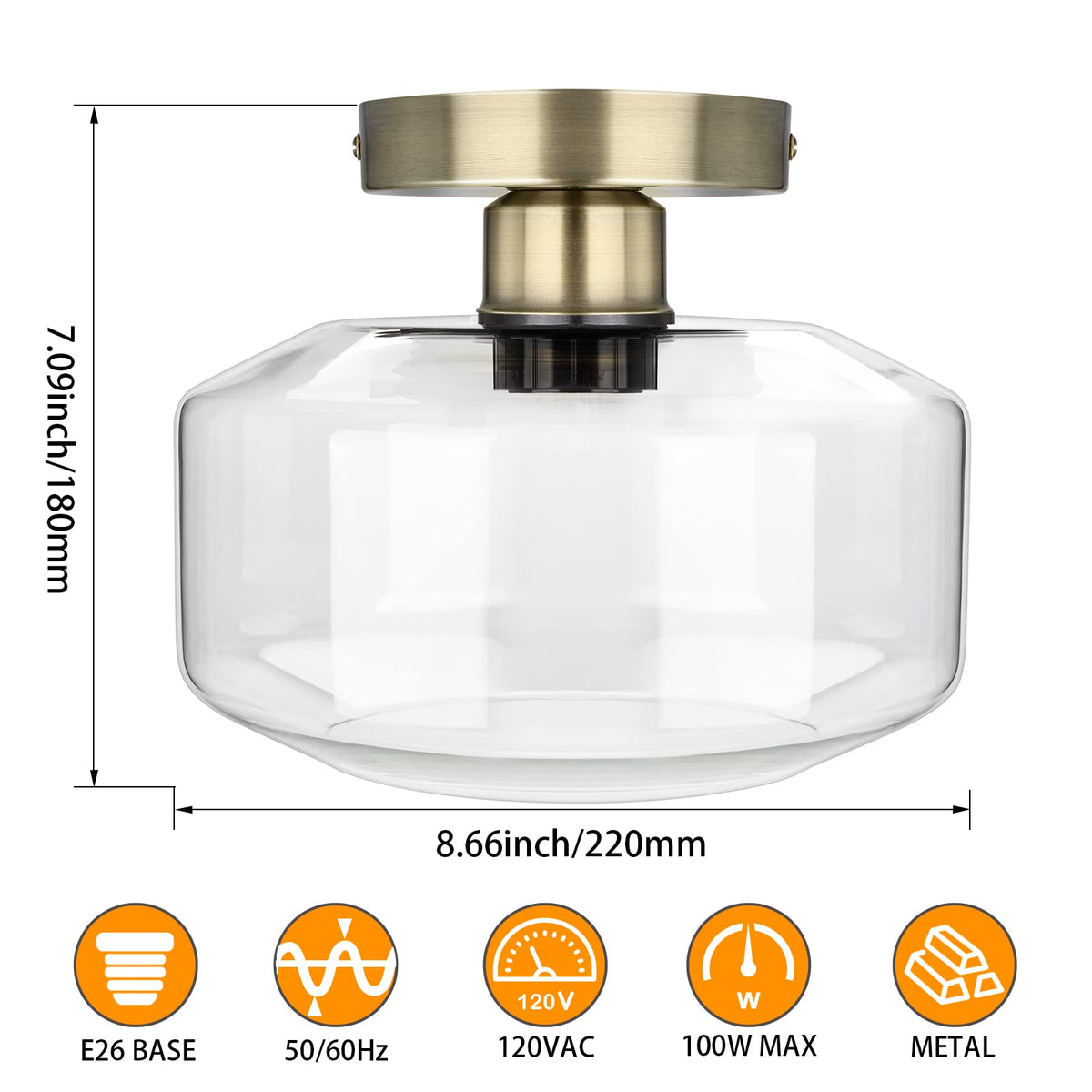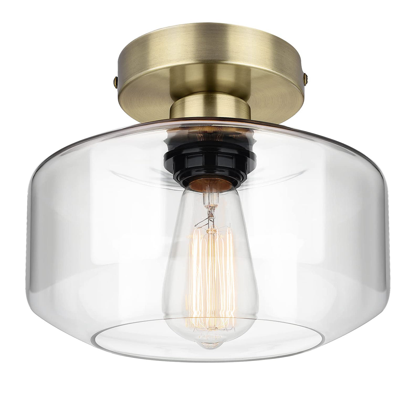 Maxvolador Industrial Semi Flush Mount Ceiling Light Brass, Clear Glass Pendant Lamp Shade, Farmhouse Lighting Hallway, Vintage