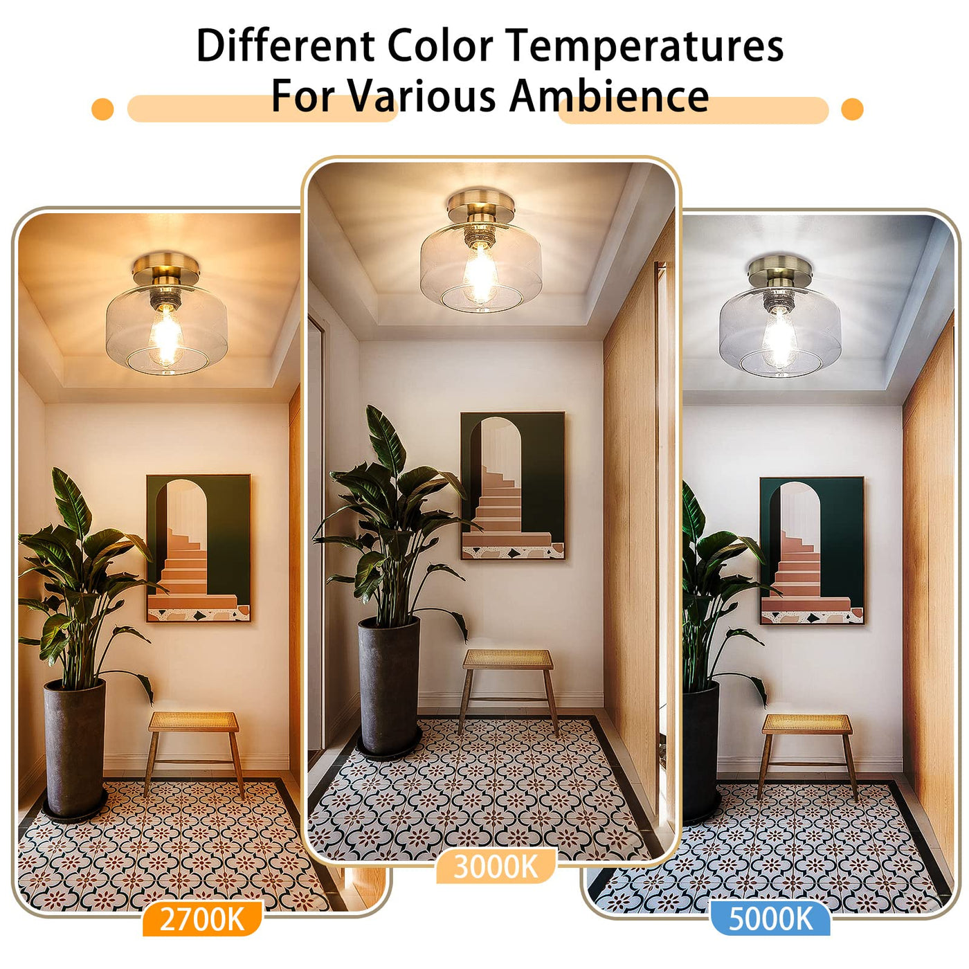Q: How do I install the semi flush mount ceiling light?A: Installation of the semi flush mount ceiling light involves unscrewing the mounting plate, attaching it to the wiring box, connecting the wires, screwing the base back to the mounting plate, fixing the glass shade, and installing an E26 base bulb. Detailed installation instructions are included in the package.