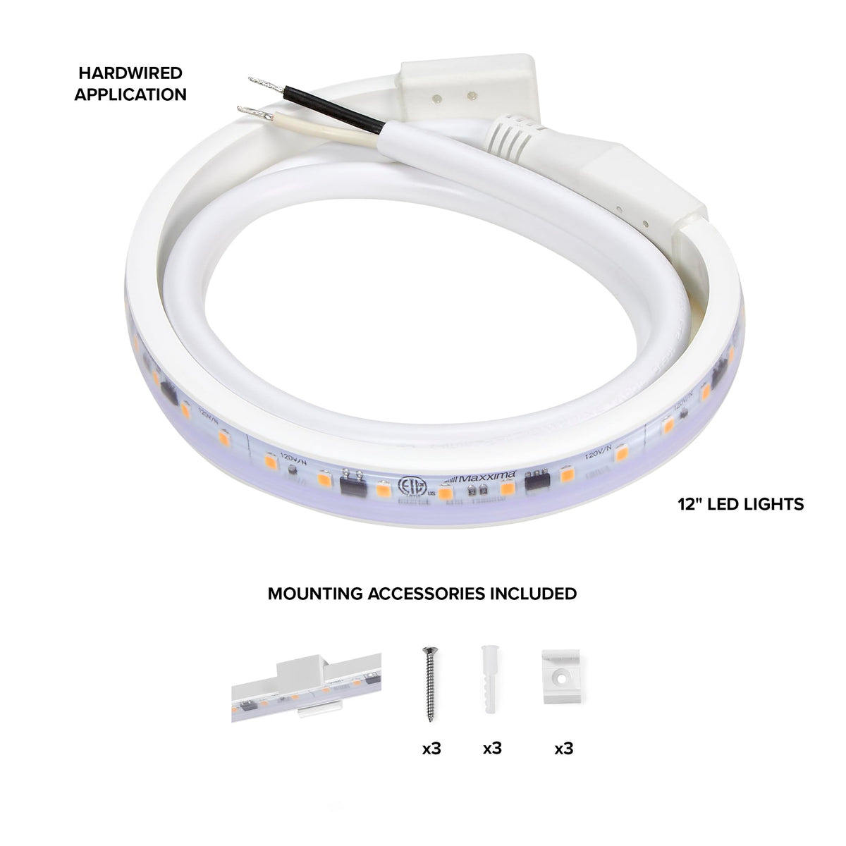 This Cutting-Edge 12'' Under-Cabinet Led Strip Light Fixture Is Designed To Illuminate Your Space With Unparalleled Brilliance. This Energy-Efficient Cove Light Can Be Easily Mounted With The Included Screws And Mounting Clips To Any Desired Surface, Including Cabinets, Counters, Bathrooms, Pantries, Closets, Crown Molding Or Any Area Where Task Lighting Is Essential. This Light Is Also Rated For Outdoor Use When Installed In A Weatherproof J-Box With Gfci Breaker. This Unique Strip Light Is Easy To Install, Wiring Directly To Your 120V Ac Power Source, With No Driver Or Power Supply Needed. The 2 Foot Cord Allows For Ample Length To Hardwire Your Fixture Ensuring A Stable And Permanent Installation To Deliver Consistent And Reliable Illumination For Years. With An Impressive 460 Lumens Of Radiant 3000K Warm White Light, This Under Counter Light Adds The Perfect Accent Lighting To Your Space While Using Only 6 Watts Of Energy. Its Compact, Low-Profile Sleek Design Of Only 0.26'' Depth Seamlessly Integrated Into Your Cabinetry, Providing Discreet And Modern Lighting Solutions. Experience The Perfect Blend Of Functionality And Aesthetics As You Transform Your Environment With This High-Performance Lighting Solution. This Under Cabinet Light Fixture Is Etl Listed And Is Backed By Maxxima For 3 Years.