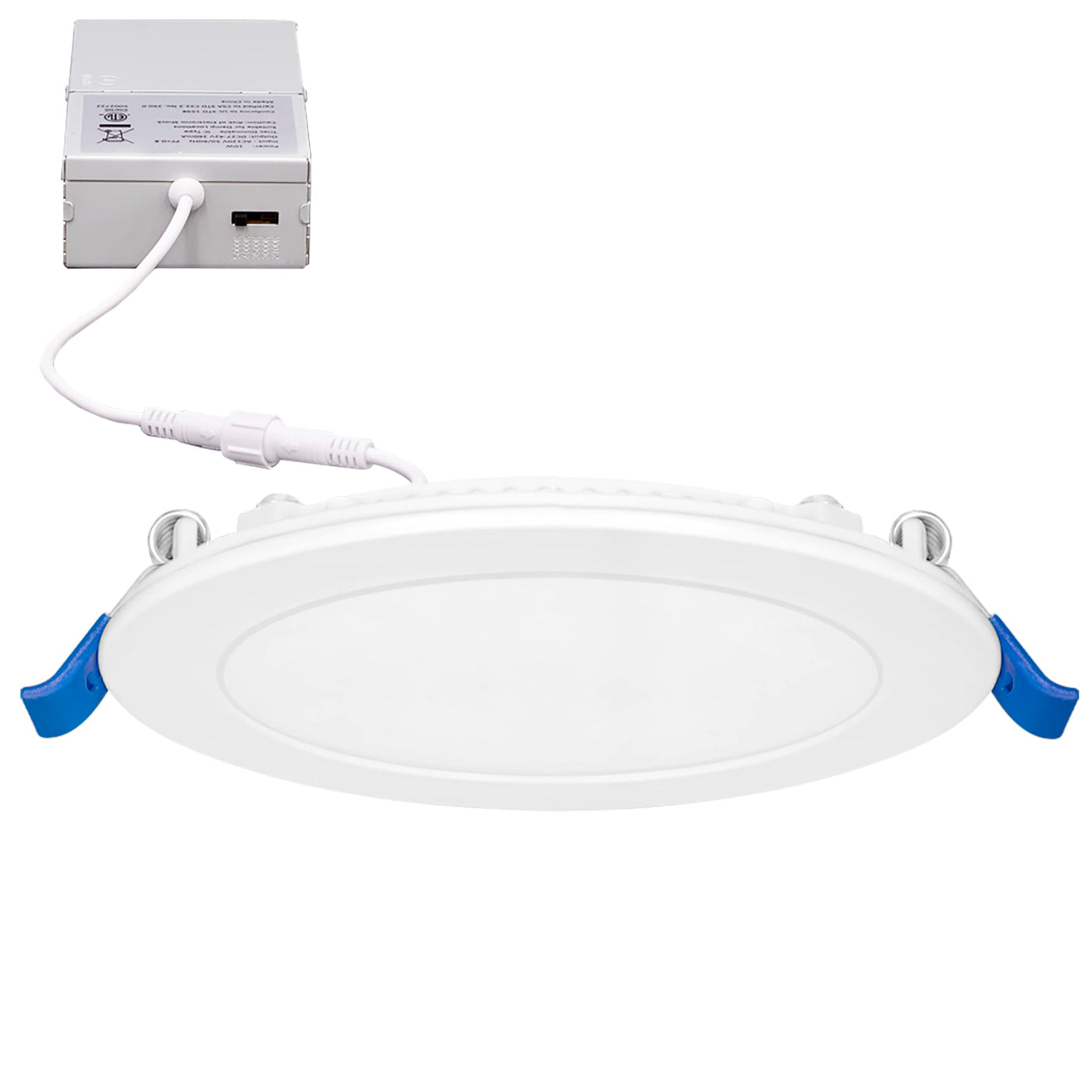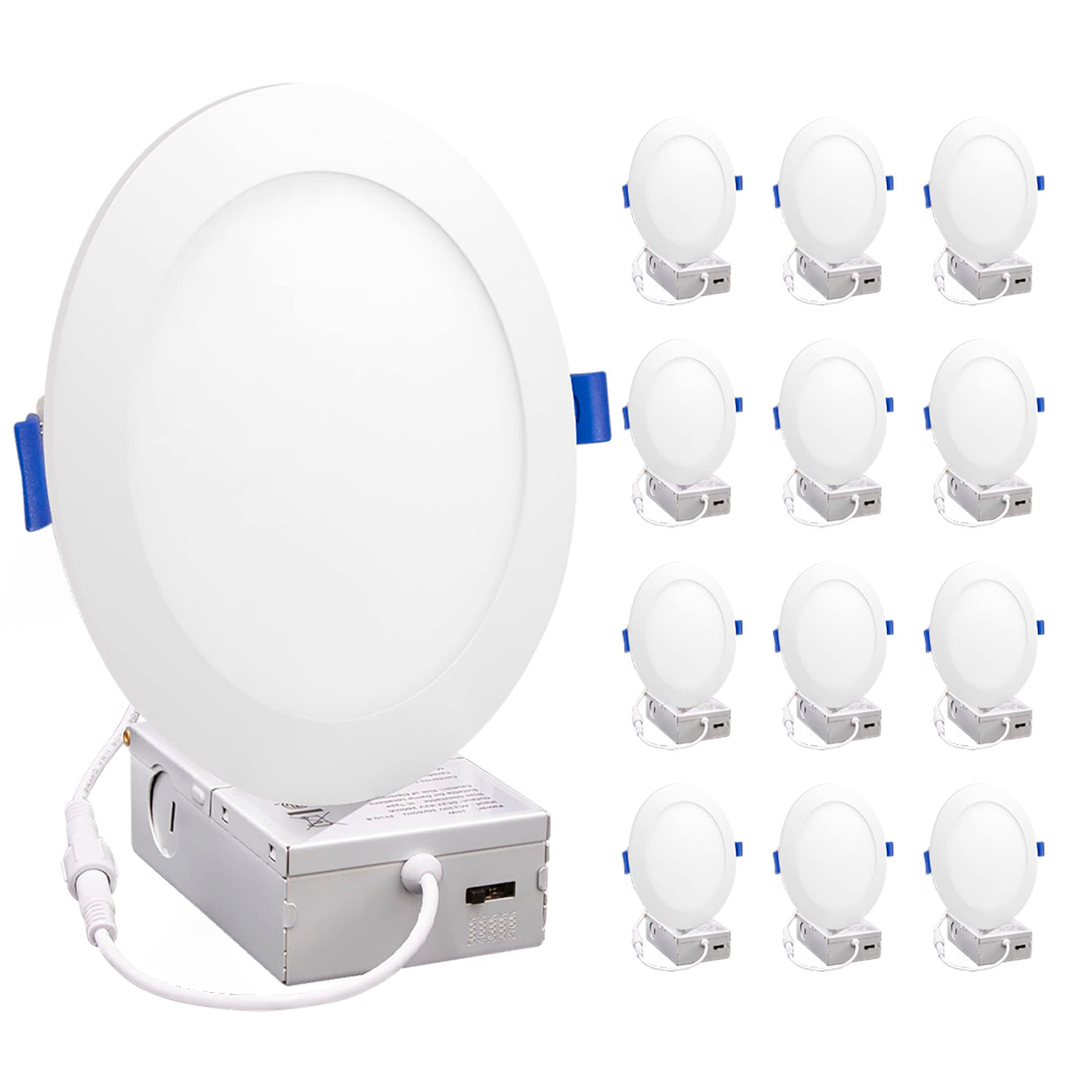 These 6-Inch Ultra-Thin Recessed Led Downlights Clip Right Into Your Existing Ceiling With No Housing Or Ceiling Can Needed. They Come With A Metal Junction Box, Also Known As A J-Box, Giving You Everything Needed To Install These Beautiful, Slim Canless Recessed Lighting Solutions. They Are Dimmable And Color Selectable With 2700K, 3000K, 3500K, 4000K And 5000K Options, Giving You The Ability To Choose Your Preferred Color Temperature By Easily Using The Switch On The J-Box. This Switch Lets You Pick From Soft White, Warm White, Bright White, Neutral White And Daylight So Your Space Has The Right Light Color For You. This 12 Pack Of 6 Selectable White Recessed Lights Are Perfect For Contractors And Professional Installers As They Can Always Have The Lights Readily Available No Matter What Color Temperature Is Needed For Their Project. These Recessed Lights Provide 1050 Lumens Of Light Output And Have A High Cri Rating Of 80, Producing An Accurate Rendering Of Colors In Your Room. They Use Just 12 Watts Of Energy, Equivalent To A 75W Incandescent Ceiling Light Featuring 120 Beam Spread. These Convenient Led Color Selectable Slim Downlights Fit Most 6 Ceiling Holes And Come With Wiring Hardware And A Detailed Instruction Manual For Easy Installation. They Can Be Installed In Dry Or Damp Locations, Making Them Ideal For Any Room In Your House Including Bathrooms, Kitchens, Hallways, Bedrooms, Living Rooms, Dining Rooms, Dens And More. They Can Also Be Installed In Outdoor Soffits And Commercial Settings. These Led Downlights Are Etl Listed And Come With A 3-Year Warranty.