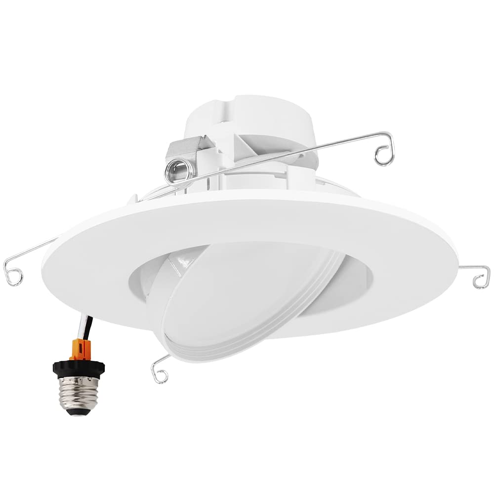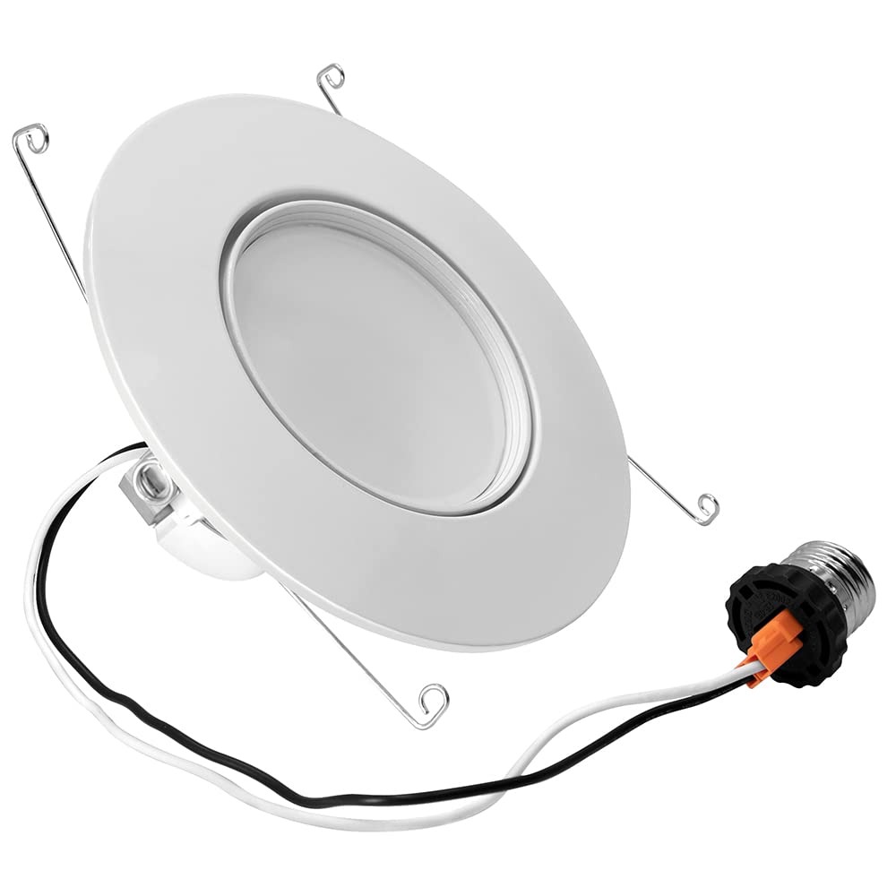 This 6-Inch Retrofit Recessed Led Gimbal Downlight Clips Right Into Your Existing 5 Or 6 Ceiling Cans. It Comes With E26 Quick Connect, Giving You Everything Needed To Install This Beautiful, Retrofit Recessed Lighting Solution. It Is A Dimmable And Color Selectable High Hat With 2700K, 3000K, 3500K, 4000K And 5000K Options, Giving You The Ability To Choose Your Preferred Color Temperature By Easily Using The Switch On The Back Of The Fixture. This Switch Lets You Pick From Soft White, Warm White, Bright White, Neutral White And Daylight So Your Space Has The Right Light Color For You. This Downlight Features A Rotatable Eyeball That Also Is Directional Allowing You To Focus The Light In Any Direction You Need With A Max Angle Of 45This 6 Selectable White Recessed Light Is Perfect For Contractors And Professional Installers As They Can Always Have The Light Readily Available No Matter What Color Temperature Is Needed. This Recessed Light Provides 1200 Lumens Of Light Output And Has A High Cri Rating Of 90, Producing An Accurate Rendering Of Colors In Your Room. It Uses Just 11 Watts Of Energy, Equivalent To A 75W Incandescent Ceiling Light. This Convenient Led Color Selectable Retrofit Gimbal Fits Most 5 And 6 Ceiling Cans And Comes With Wiring Hardware And A Detailed Instruction Manual For Easy Installation. It Can Be Installed In Dry Or Damp Locations, Making It Ideal For Any Room In Your House Including Bathrooms, Kitchens, Hallways, Bedrooms, Living Rooms, Dining Rooms, Dens And More. This Led Downlight Is Ul Listed And Comes With A 3-Year Warranty.
