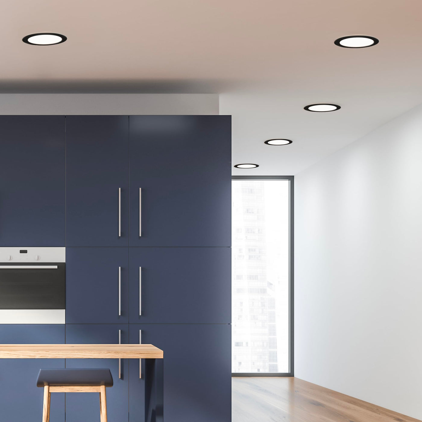 Q: What is the installation process for the Maxxima Recessed LED Downlight?A: The Maxxima Recessed LED Downlight installs directly into your ceiling using tension spring clips, eliminating the need for a housing or can. It comes with a metal junction box and all necessary wiring hardware for easy installation.