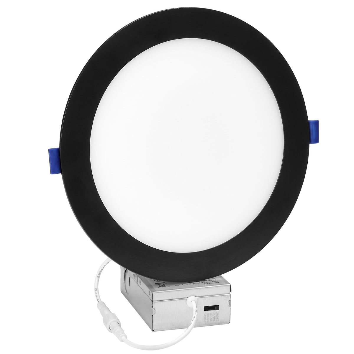 This 8-Inch Ultra-Thin Black Recessed Led Downlight Clips Right Into Your Existing Ceiling With No Housing Or Ceiling Can Needed. It Comes With A Metal Junction Box, Also Known As A J-Box, Giving You Everything Needed To Install This Beautiful, Slim Canless Recessed Lighting Solution. It Is Dimmable And Color Selectable With 2700K, 3000K, 3500K, 4000K And 5000K Options, Giving You The Ability To Choose Your Preferred Color Temperature By Easily Using The Switch On The J-Box. This Switch Lets You Pick From Soft White, Warm White, Bright White, Neutral White And Daylight So Your Space Has The Right Light Color For You. This 8 Selectable Round Recessed Light Is Perfect For Contractors And Professional Installers As They Can Always Have The Light Readily Available No Matter What Color Temperature Is Needed. This Recessed Light Provides 1400 Lumens Of Light Output And Has A High Cri Rating Of 82, Producing An Accurate Rendering Of Colors In Your Room. It Uses Just 18 Watts Of Energy, Equivalent To A 90W Incandescent Ceiling Light Featuring 110 Beam Spread. This Convenient Led Color Selectable Slim Downlight Fits Most 8 Ceiling Holes And Comes With Wiring Hardware And A Detailed Instruction Manual For Easy Installation. It Can Be Installed In Dry Or Damp Locations, Making It Ideal For Any Room In Your House Including Bathrooms, Kitchens, Hallways, Bedrooms, Living Rooms, Dining Rooms, Dens And More. It Can Also Be Installed In Outdoor Soffits And Commercial Settings. This Led Downlight Is Etl Listed And Comes With A 3-Year Warranty.