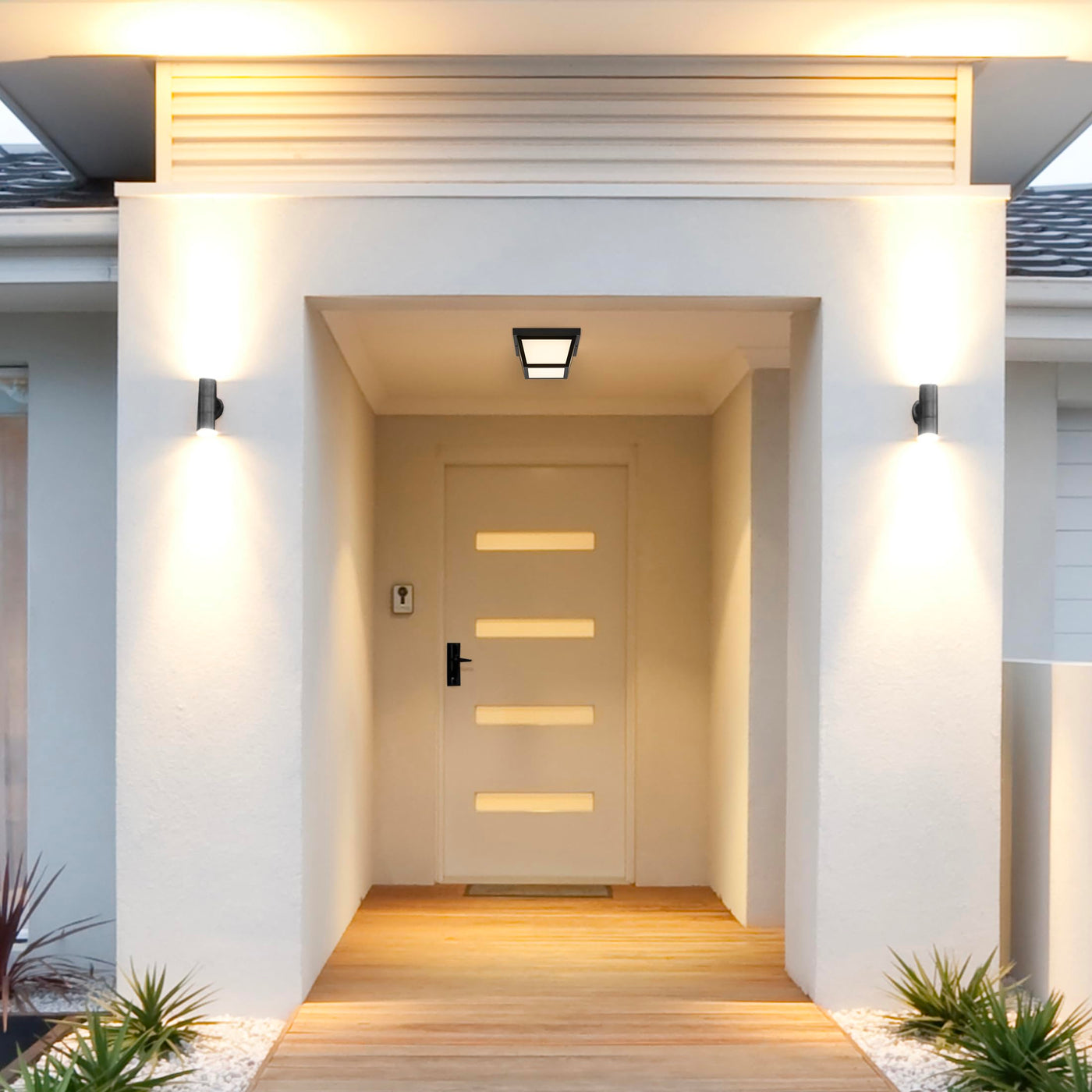This Tapered Flush Mount Led Porch Ceiling Light Is The Perfect Finishing Touch For The Front Entrance Or Other Exterior Areas Of Any House, Apartment, Condo Or Hotel. It Features A Durable Black Steel Housing With A Frosted Acrylic Lens, Suitable For Standard Outdoor Porch Light Applications. This Timeless Light Fixture Is Energy Efficient And Will Properly Illuminate Any Outdoor Space. Its Durability Allows This Fixture To Be Weather Resistant For All Outdoor Applications. This Decorative Integrated Led Fixture (No Bulb Required) Is Designed To Complement A Wide Range Of Architectural Styles. It Produces 1000 Lumens Of 3000K Warm White Light. It Is Equivalent To A 75W Incandescent Bulb While Using Only 12.5 Watts Of Energy. It Has A Lifespan Of 50,000 Hours And Is Etl Listed. This Product Is Backed By Maxxima For 3-Years.