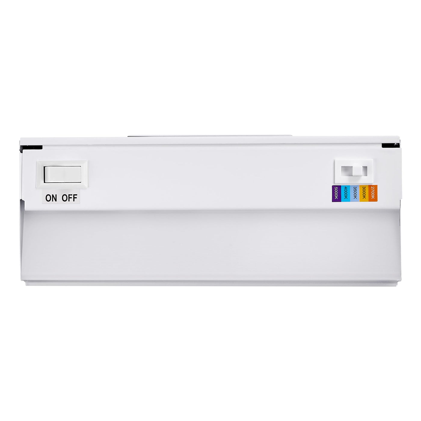 Provide 270 lumens of light to any counter area with our 5 CCT 9'' under-cabinet LED light fixture, which can be easily mounted to any desired surface, including cabinets, counters, workshops, pantries or closets. It features an on/off switch as well as a color selectable slide switch. This switch allows you to adjust the color temperature to your desired level of 2700K, 3000K, 3500K, 4000K or 5000K of soft white, warm white, bright white, neutral white or daylight. These LED under cabinet light bars are easy to install using the included mounting screws and the keyhole slots on the back of the fixture. The 10cord allows for ample length to hardwire your fixture. The manual on/off switch on the side provides direct access to turn lights on or off. Additionally, you can leave the switch in the ''on'' position and control the light from a wall switch or timer (sold separately). Its compact, low-profile design of only 1.45'' depth makes it the perfect lighting solution for areas with limited space. This under cabinet light fixture is ETL Listed and is backed by Maxxima for 3 years.