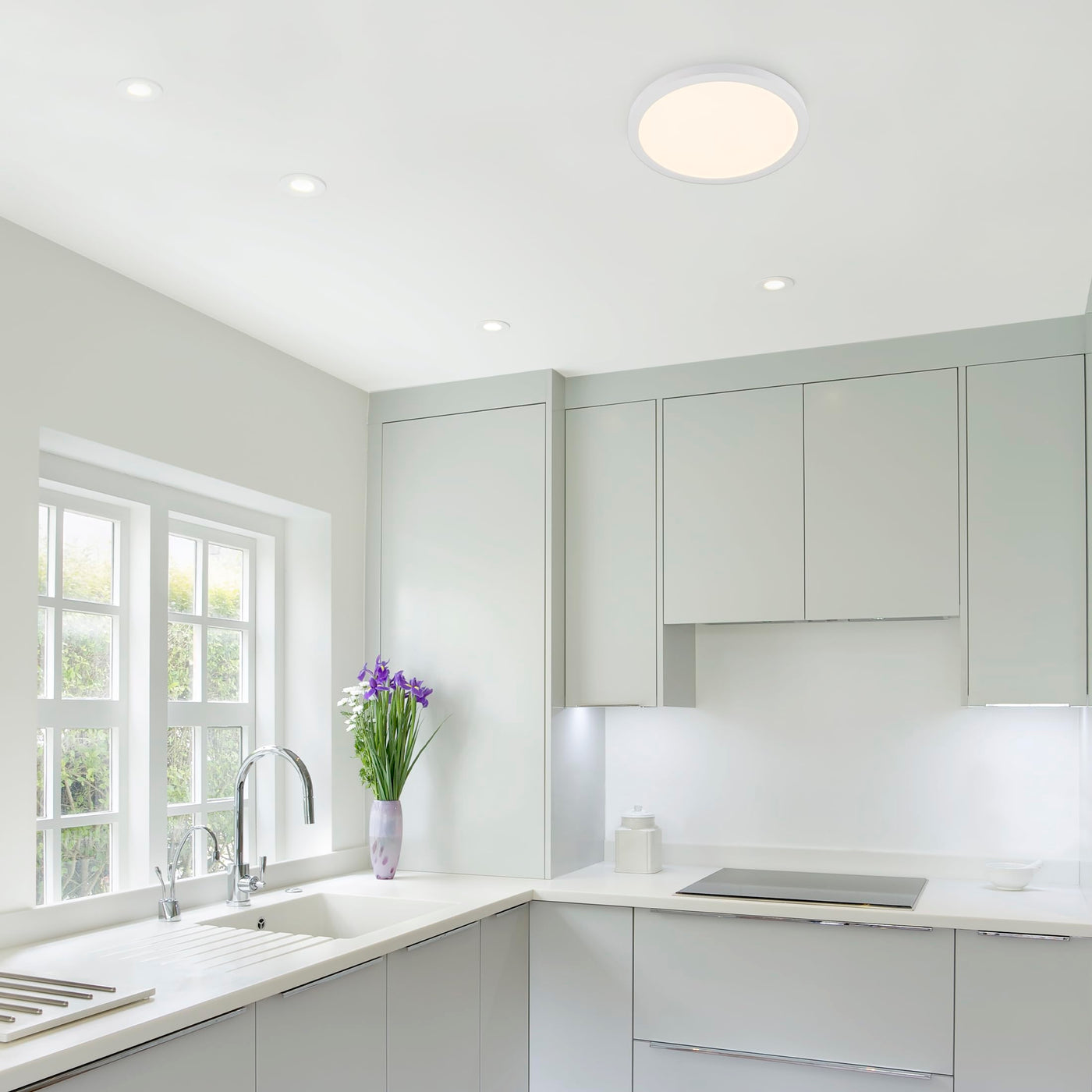 This ceiling light boasts a sleek white finish and a depth of only 0.95 inches, ensuring it fits seamlessly into any decor. The innovative color selectable feature allows users to choose from five different color temperatures—2700K, 3000K, 3500K, 4000K, and 5000K—via a switch located on the back of the fixture. This versatility ensures that you can achieve the perfect ambiance for any room. Additionally, this energy-efficient light uses only 24 watts while providing a powerful output of 2300 lumens, making it an excellent replacement for traditional incandescent lights.
