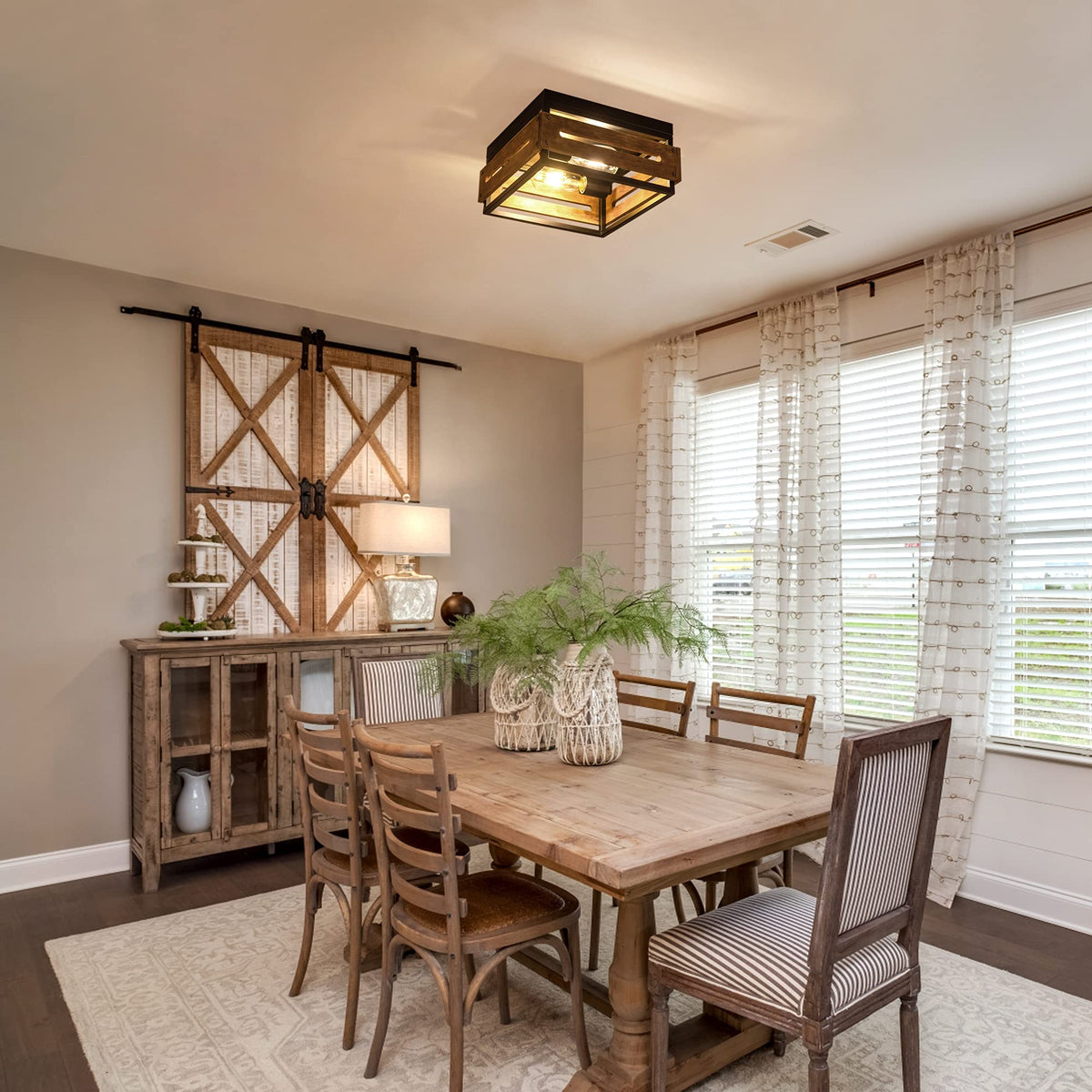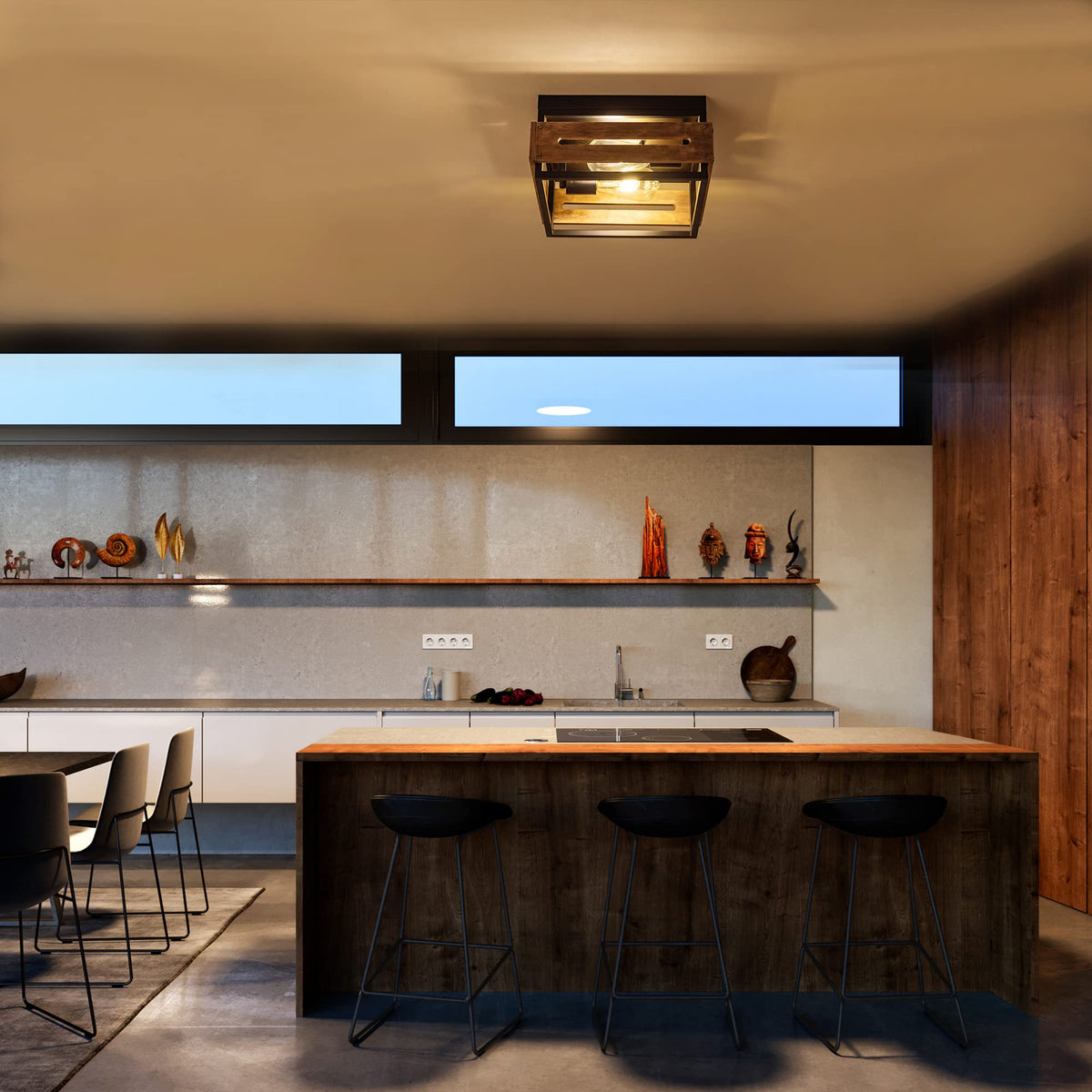 Q: Is this ceiling light fixture suitable for damp areas like kitchens or bathrooms?A: Yes, the rustic design and durable materials of the Mayful Flush Mount Ceiling Light make it suitable for use in kitchens, bathrooms, and other areas of your home where moisture may be present.