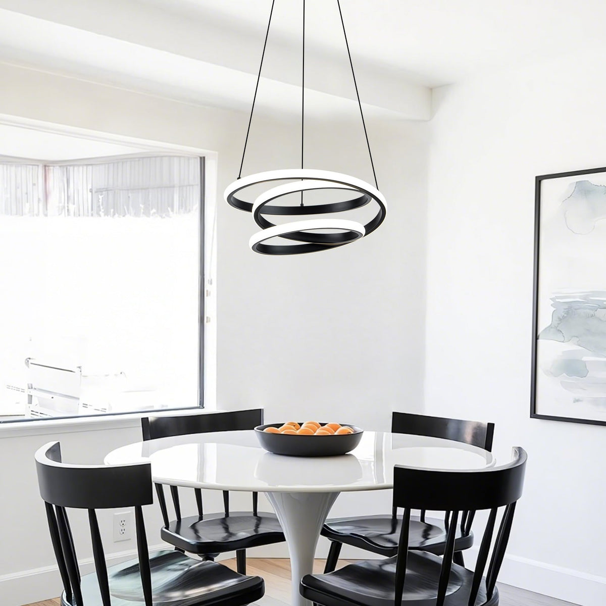 Mayful Modern Chandelier With Remote Control 3-Color Dimmable Led Pendant Light Fixtures Height Adjustable Kitchen Island Lighting For Dining Room Bedroom Living Room Foyer Office Black 13.78 Inches
