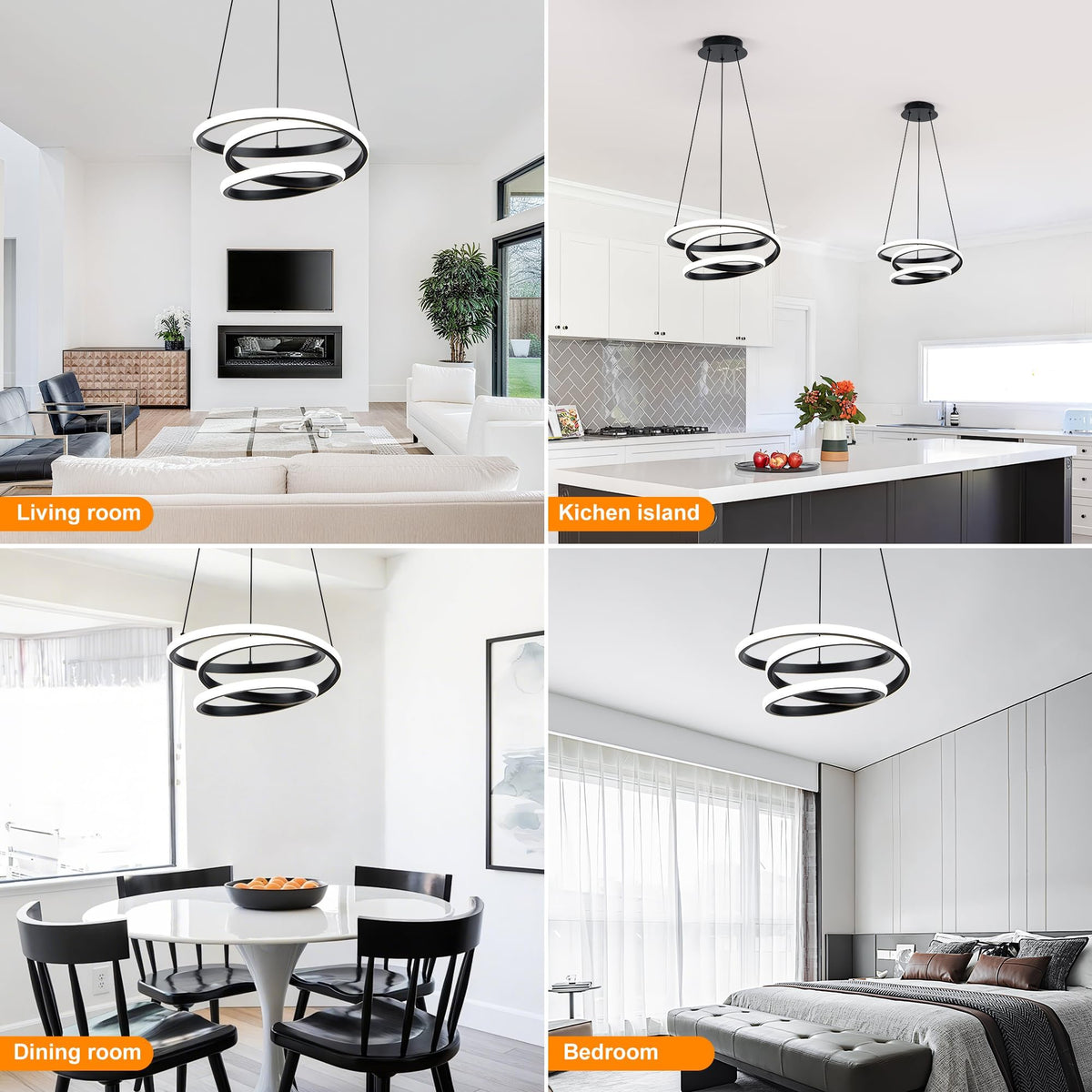Mayful Modern Led Pendant Light Contemporary Chandelier With Remote Control 3000K/4500/6000K Black Led Chandelier For Kitchen Island Lighting Height Adjustable Pendant Light For Dining Room Kitchen