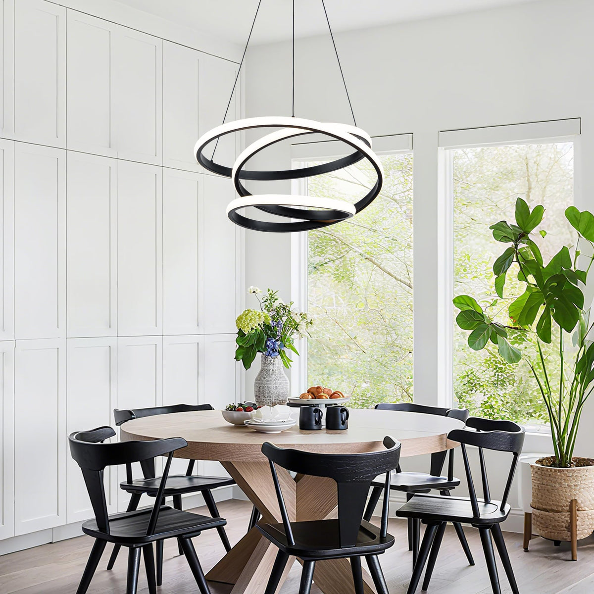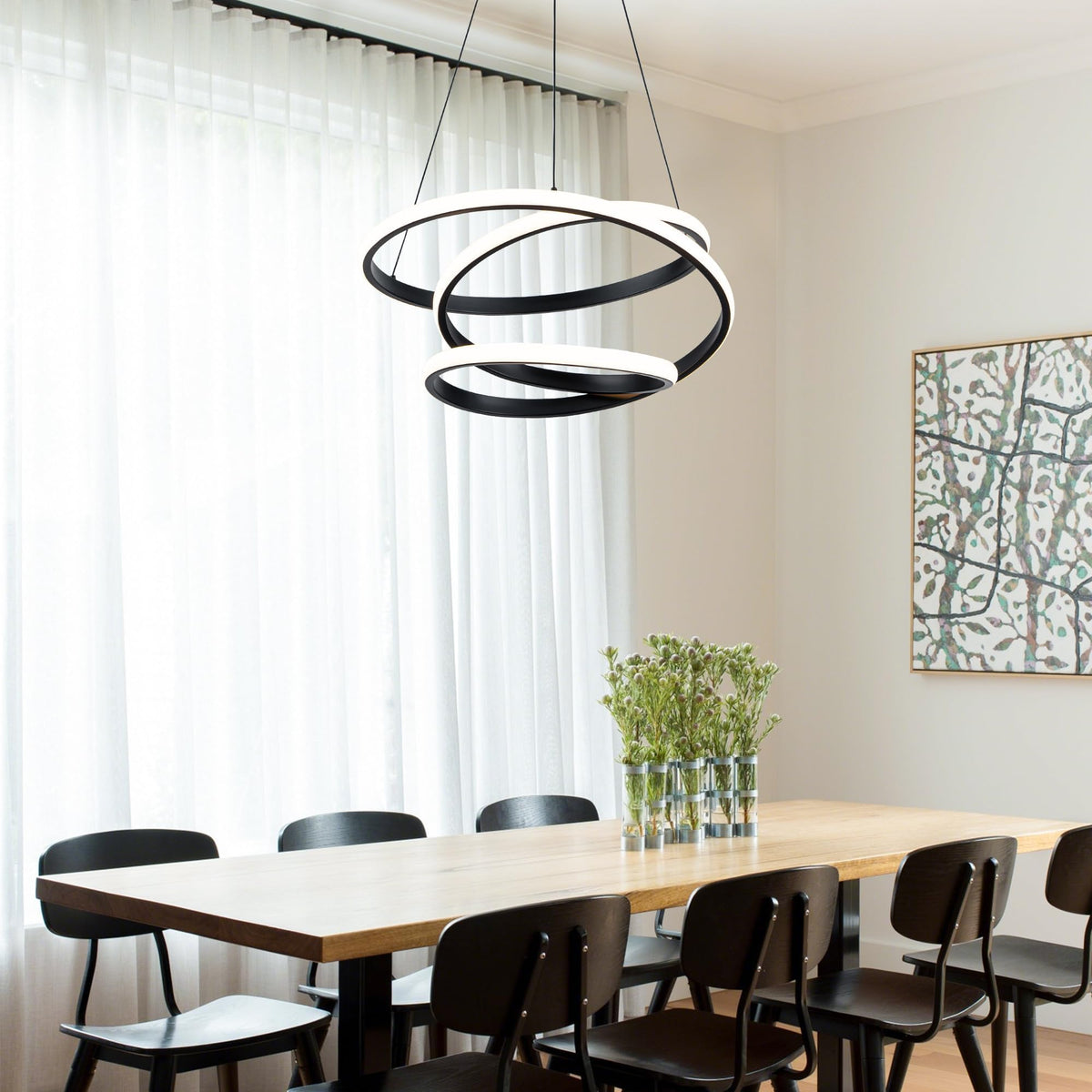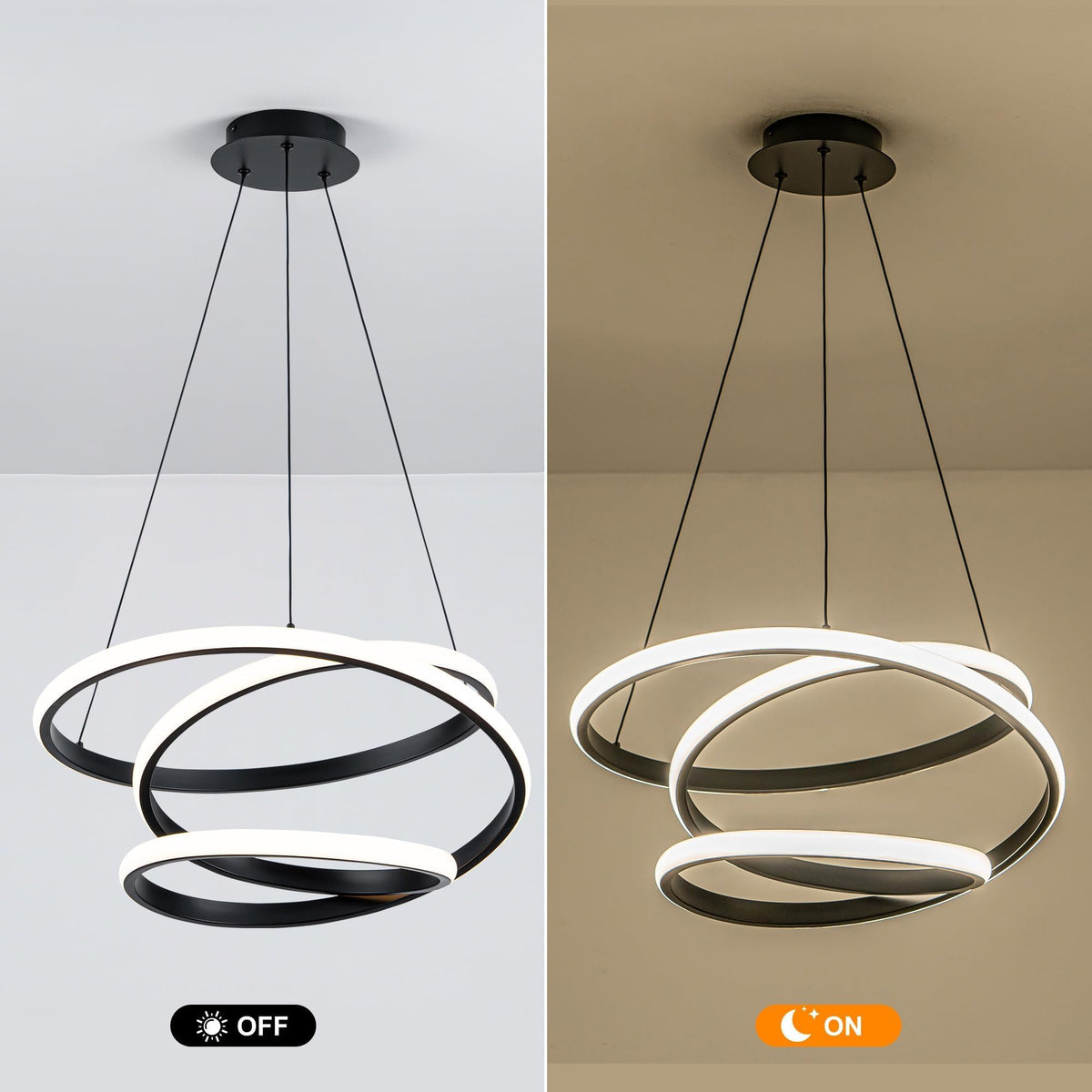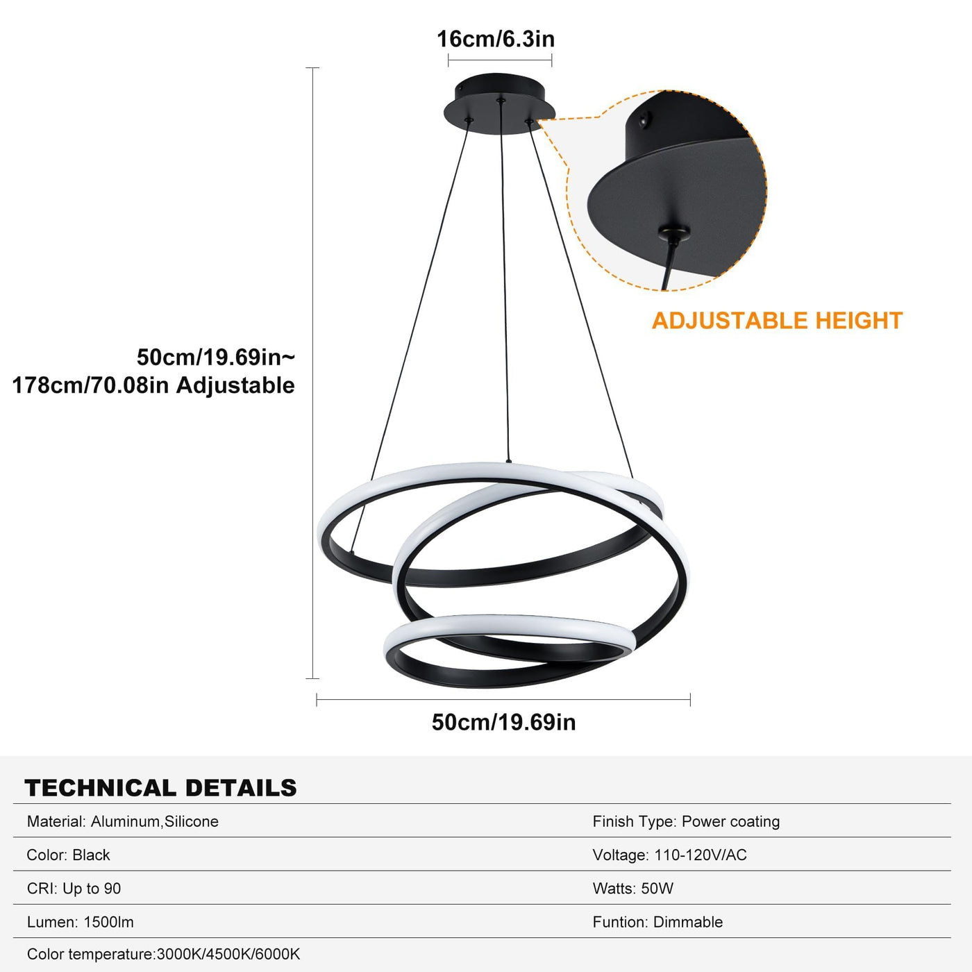 Mayful Modern Chandelier With Remote Control 3-Color Dimmable Led Pendant Light Fixtures Height Adjustable Kitchen Island Lighting For Dining Room Bedroom Living Room Foyer Office Black 19.7 Inches