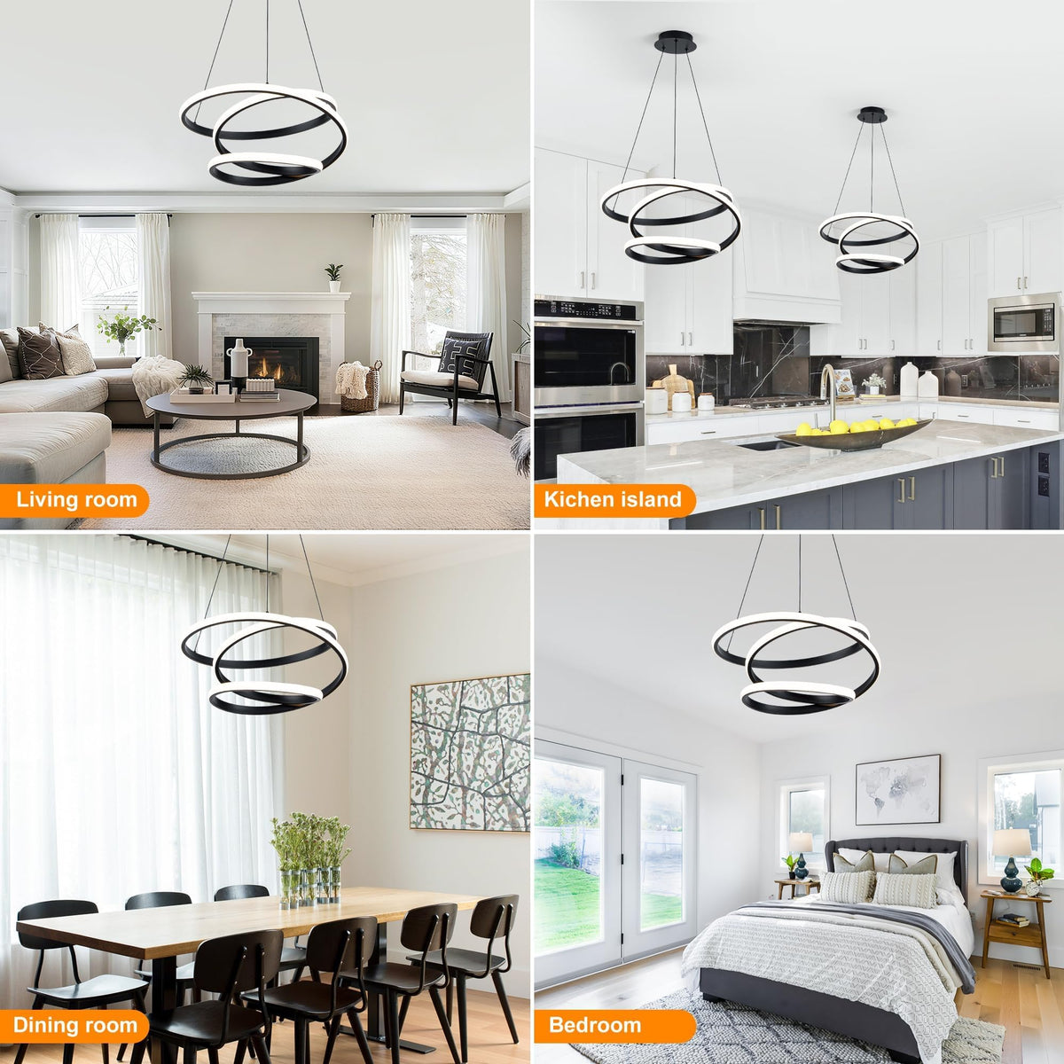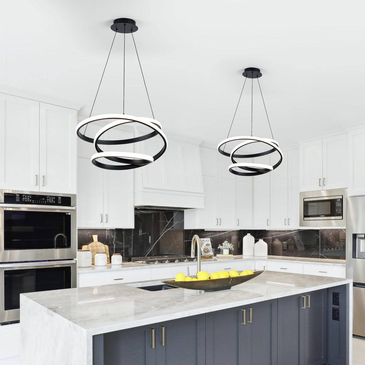 Mayful Modern Led Pendant Light Contemporary Chandelier With Remote Control 3000K/4500/6000K Black Led Chandelier For Kitchen Island Lighting Height Adjustable Pendant Light For Dining Room Kitchen