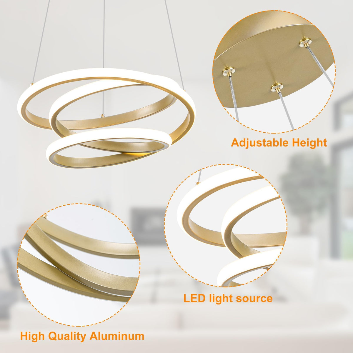 Mayful Modern Led Pendant Light Contemporary Chandelier With Remote Control 3000K/4500/6000K Gold Led Chandelier For Kitchen Island Lighting Height Adjustable Pendant Light For Dining Room Kitchen
