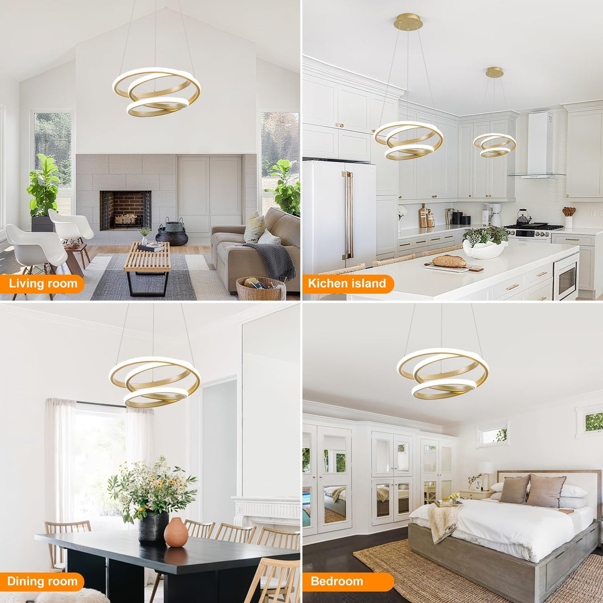 Mayful Modern Chandelier With Remote Control 3-Color Dimmable Led Pendant Light Fixtures Height Adjustable Kitchen Island Lighting For Dining Room Bedroom Living Room Foyer Office Gold 13.78 Inches