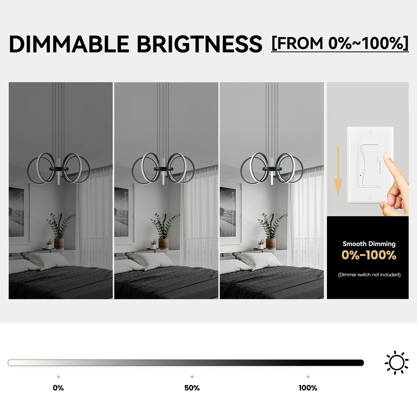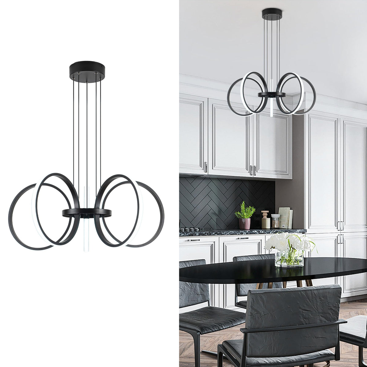 Mayful Modern Led Chandelier,Black 5 Rings Round Pendant Lighting,Adjustable Height Ceiling Pendant Light For Kitchen Island,Contemporary Stepless Dimming For Living Room Dining Room Bedroom,6000K Daylight