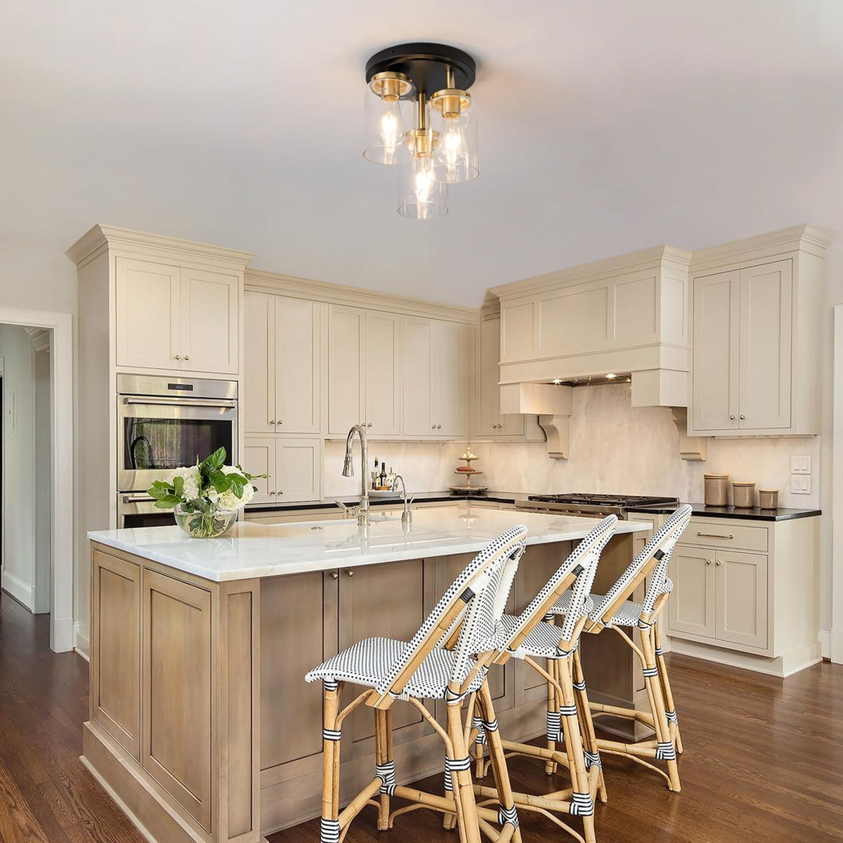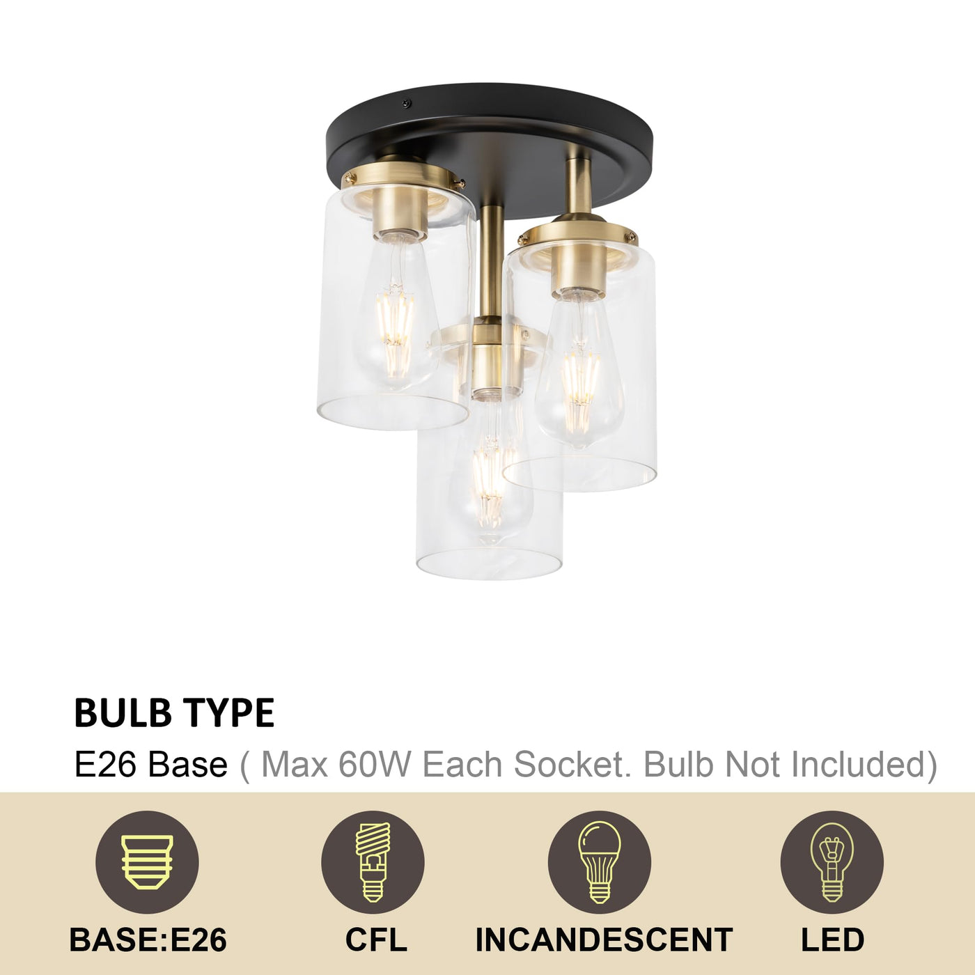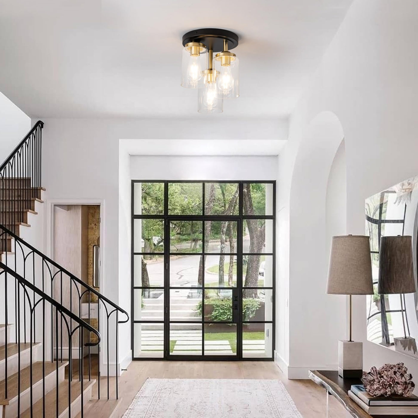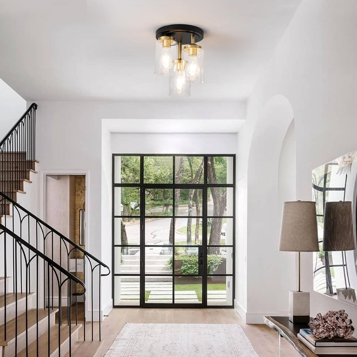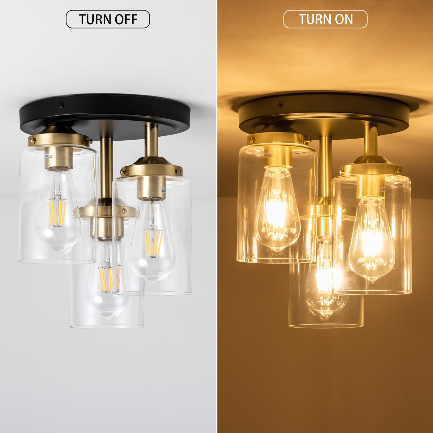 Mayful Semi Flush Mount Ceiling Light, 3-Light Clear Glass Shade Ceiling Light Fixture, Gold Finish Cluster Cylinder Ceiling Lig