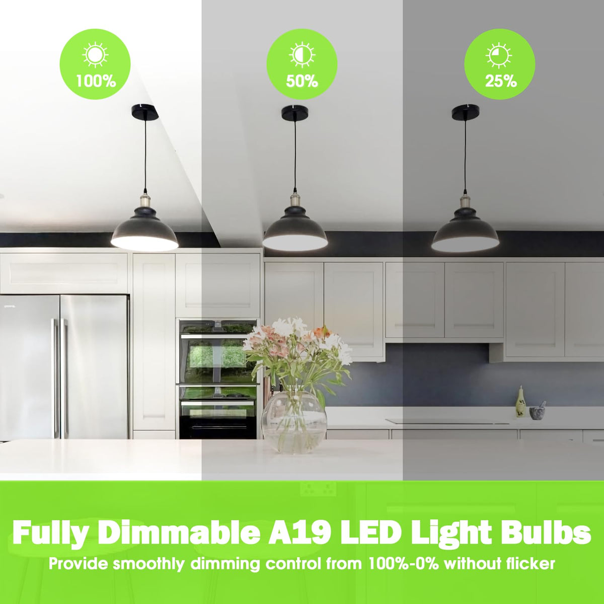 Q: Are these light bulbs compatible with dimmer switches?A: Yes, the Maylaywood A19 LED Light Bulbs are designed to be dimmable. They work seamlessly with compatible dimmer switches, allowing you to adjust the brightness from 100% to 0% to suit your mood or decor.