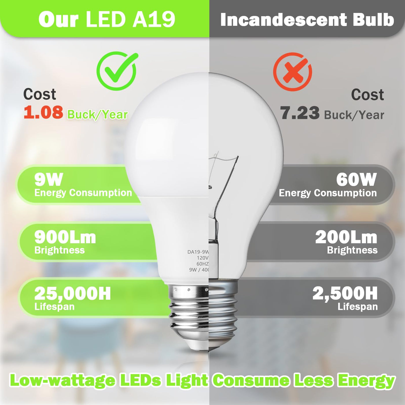 Q: What are the benefits of using Maylaywood A19 LED Light Bulbs?A: Maylaywood A19 LED Light Bulbs provide numerous benefits including energy savings, with a wattage of just 9 watts while delivering the equivalent brightness of a 60-watt incandescent bulb. They have a lifespan of over 25,000 hours, significantly reducing the frequency of replacements. Additionally, they offer smooth dimming capabilities, allowing you to create the perfect ambiance for any setting.