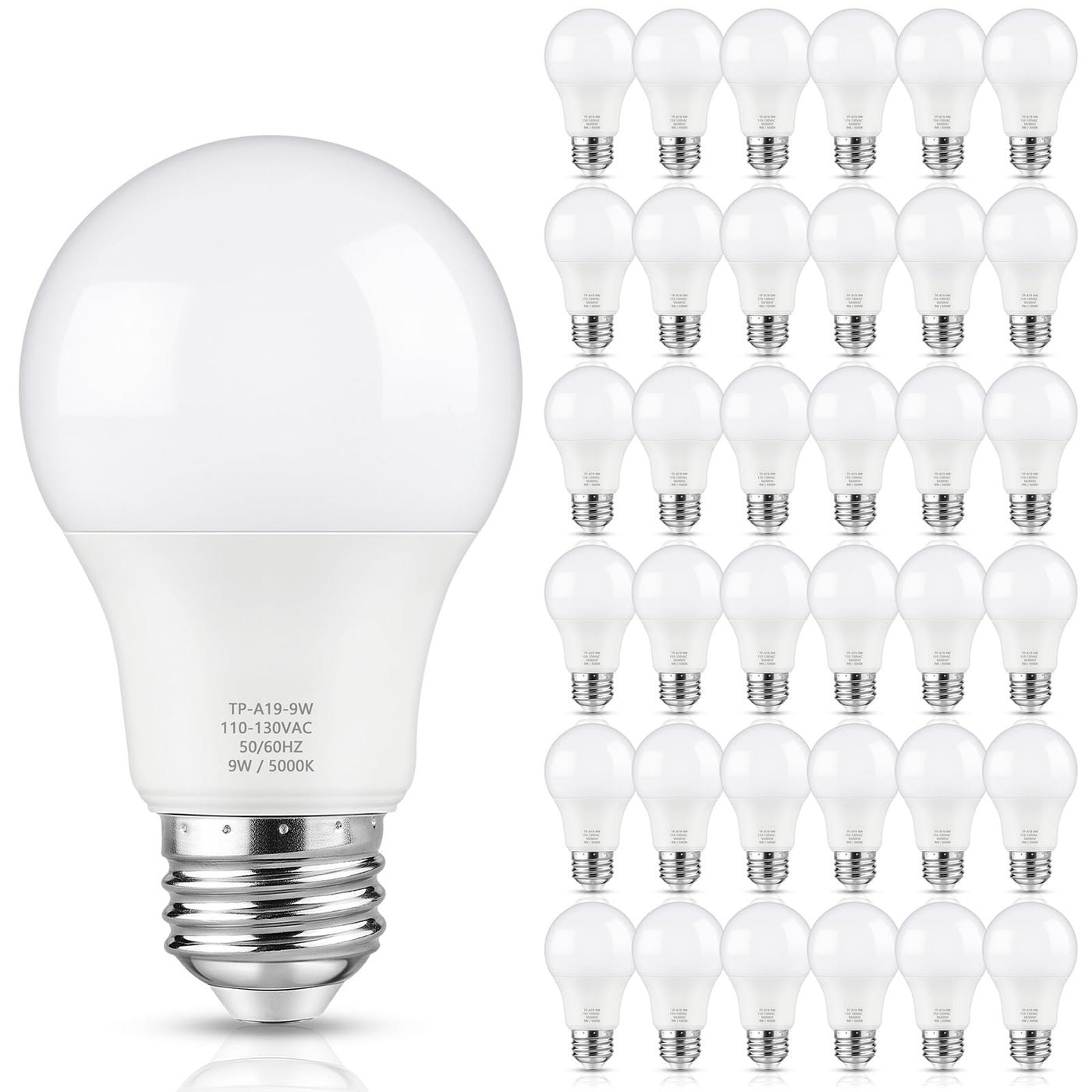 Maylaywood A19 Led Light Bulbs, 60 Watt Equivalent Led Bulb, Daylight White 5000K, 850Lm, E26 Base, Non-Dimmable, 9W Bright White Led Bulbs, 36-Pack