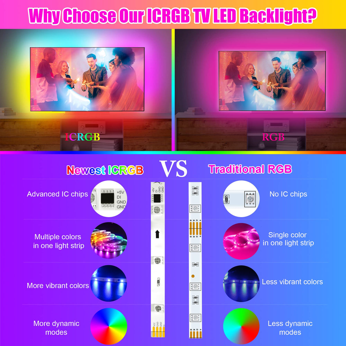 - **Bluetooth App Control**: Easily manage your LED strip lights via a dedicated app, offering seamless control over 16 million colors to elevate your TV display and improve image clarity.
