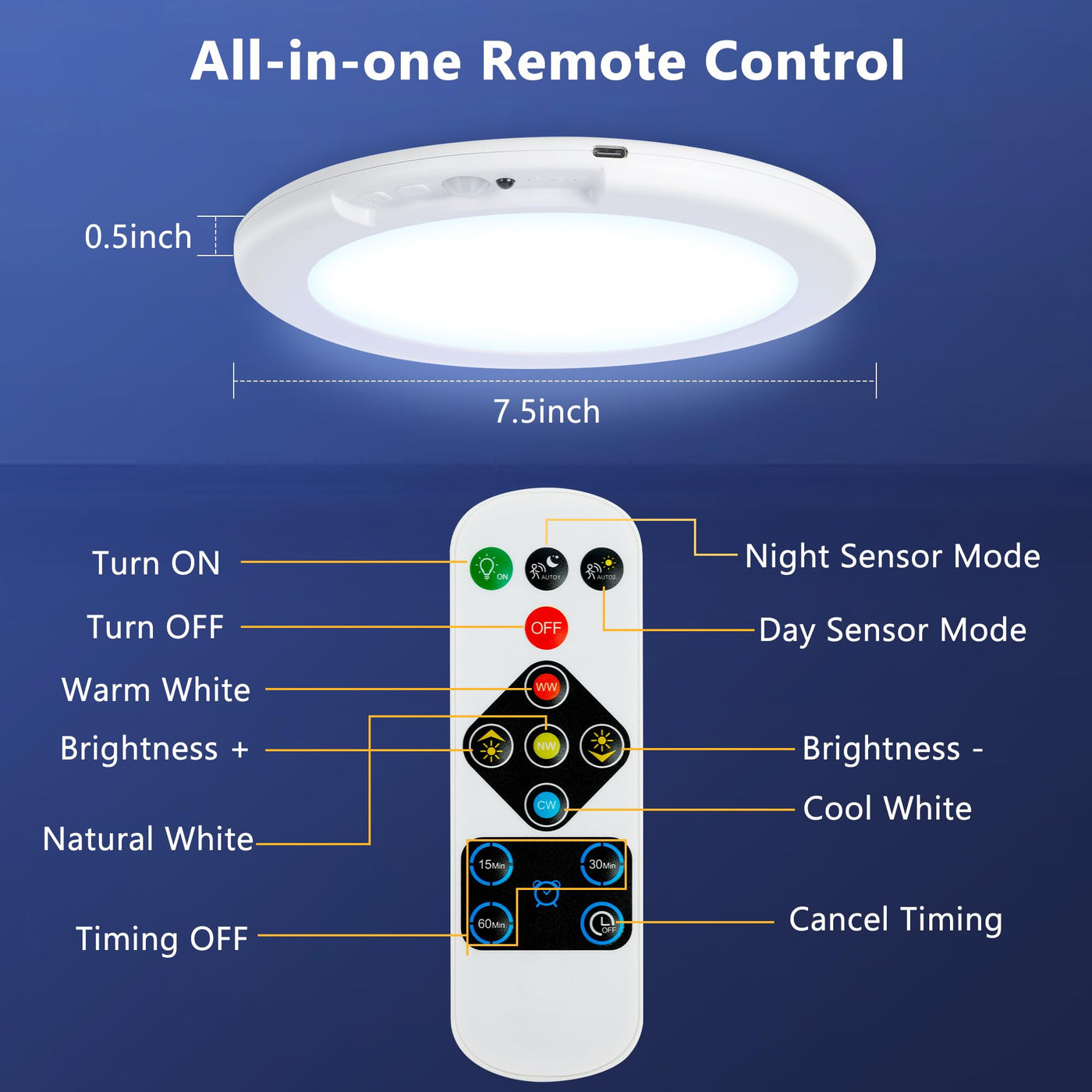 Maylit 4 Pack Rechargeable Ceiling Lights, Motion Sensor Lights No Wiring, Wireless Closet Lights Battery Operated, For Bathroom