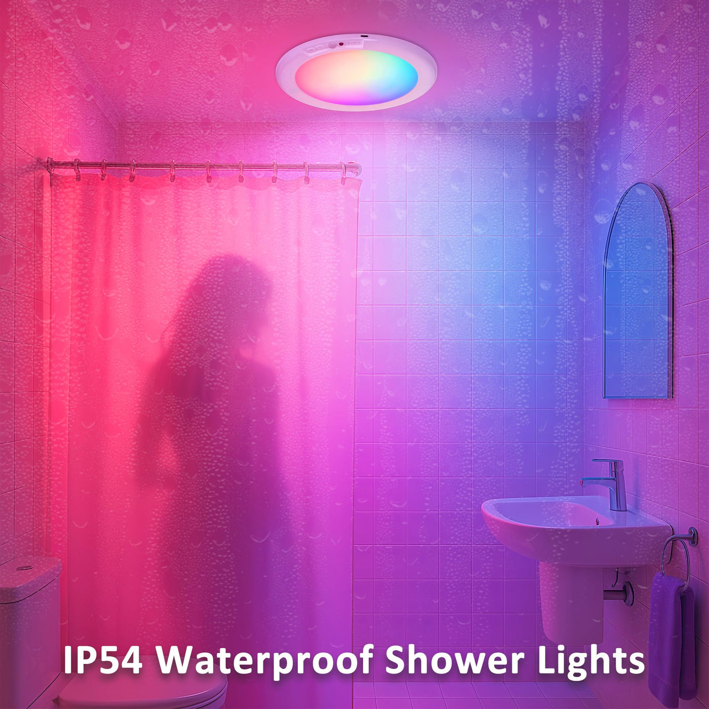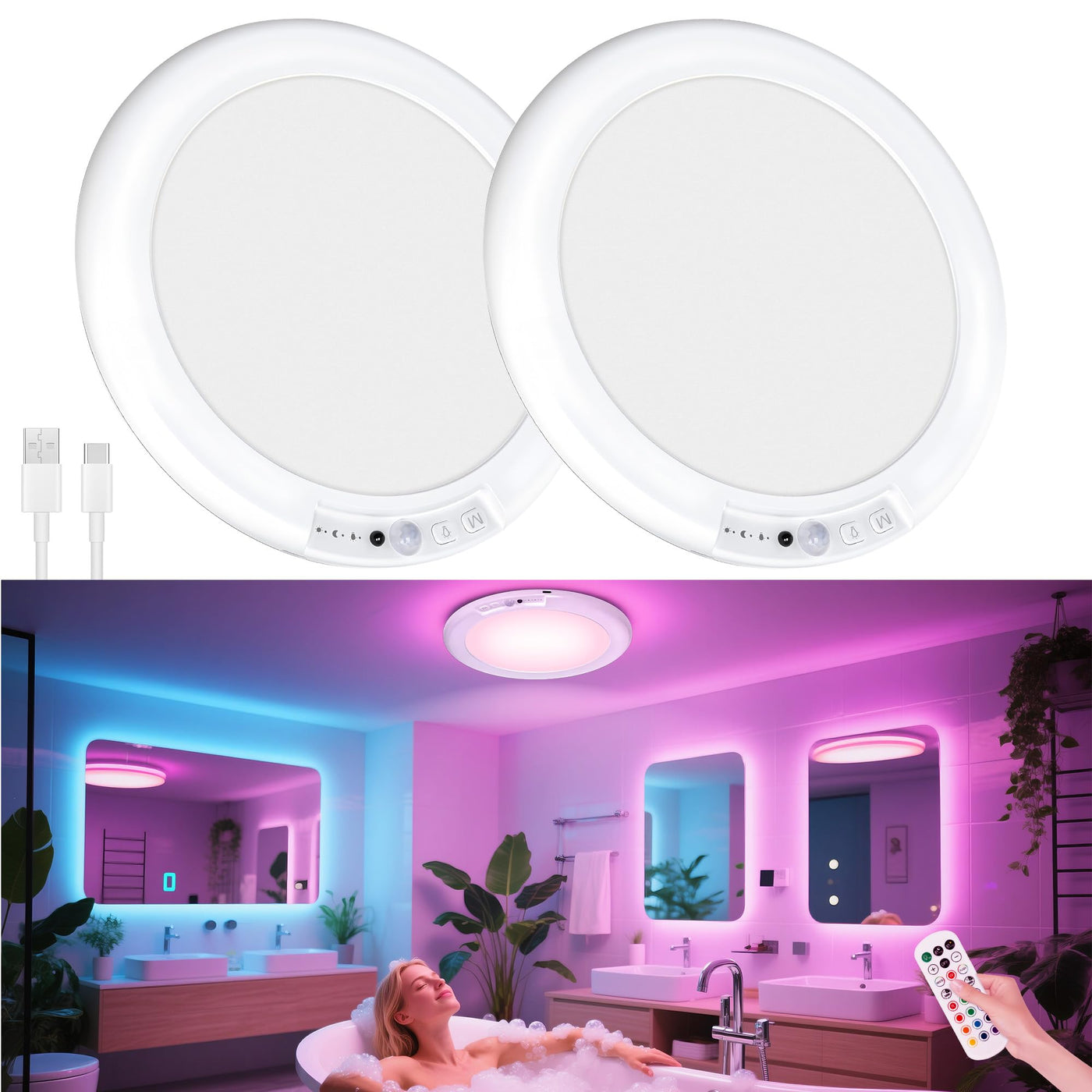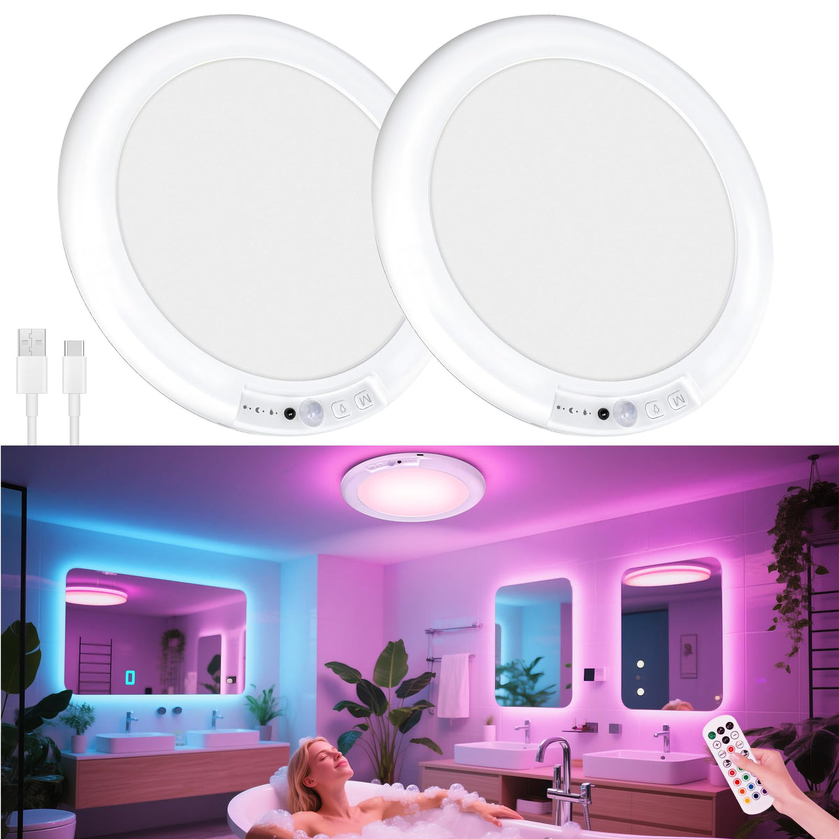 Maylit Shower Lights 2 Pack Rgbw Rechargeable Ceiling Light Waterproof Battery Operated Lamp Wireless Stick On Inside Motion Sensor Mood Led Lighting For Bathroom No Wiring Indoor