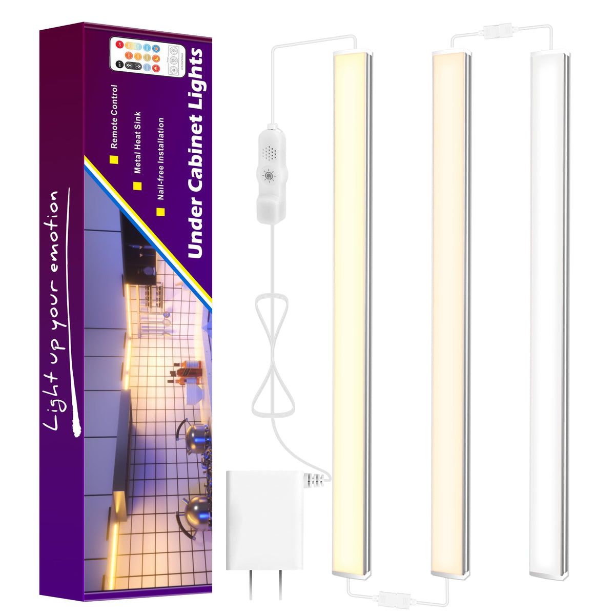 Maylit Under Cabinet Lights Plug In, 3 Pcs 12 Inch Multi-Color Under Cabinet Lighting, Super Bright Under Counter Lights For Kitchen, Ultra Thin Dimmable Light For Cabinet, Counter, Workbench, Desk