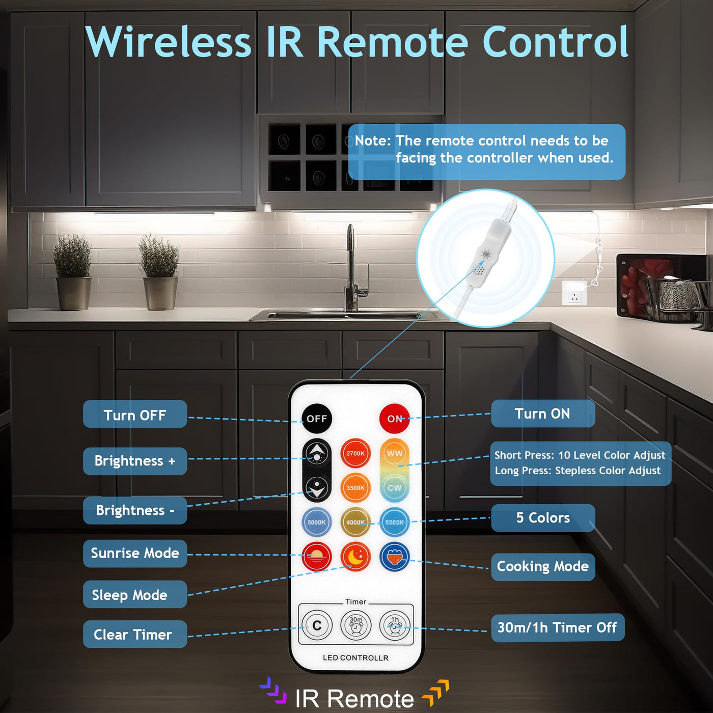 Q: What are the different color temperatures available for the maylit Under Cabinet Lights?A: The maylit Under Cabinet Lights offer 5 different color temperatures ranging from warm white at 2700K to daylight at 6000K, allowing you to choose the perfect ambiance for your space.