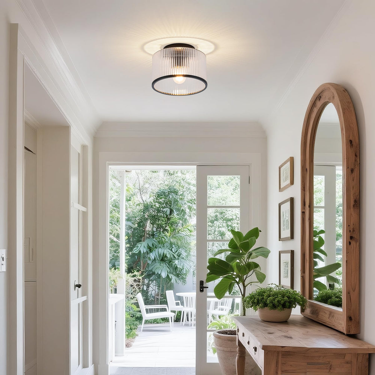 MAYNA Modern Black Semi Flush Mount Ceiling Light Fixture, 1-Light Hallway Light Fixtures Ceiling Mount, Dimmable Kitchen Lighti