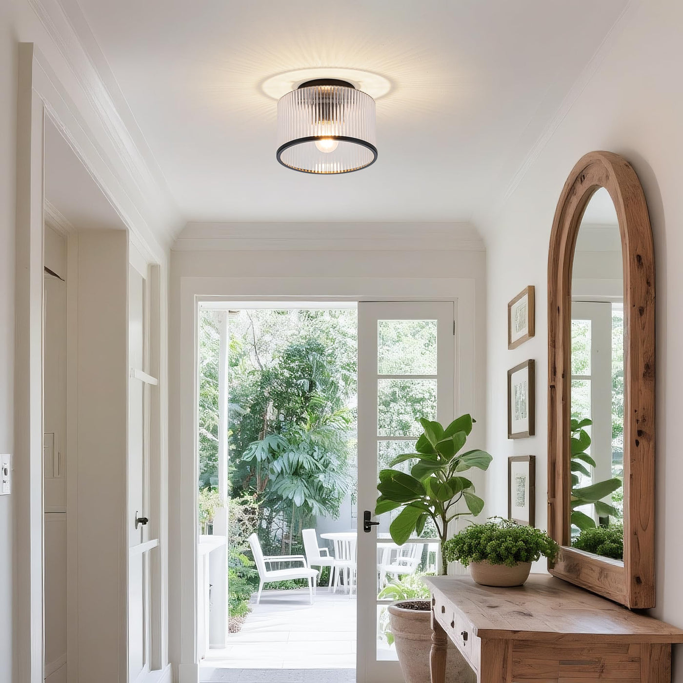 This transparent glass flush mount light delivers clean-lined simplicity and soothing illumination to elevate your living space