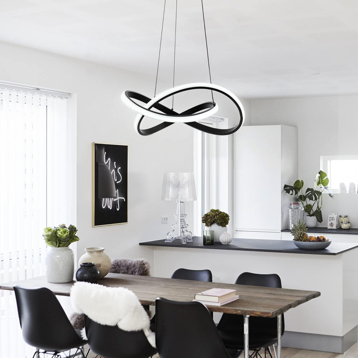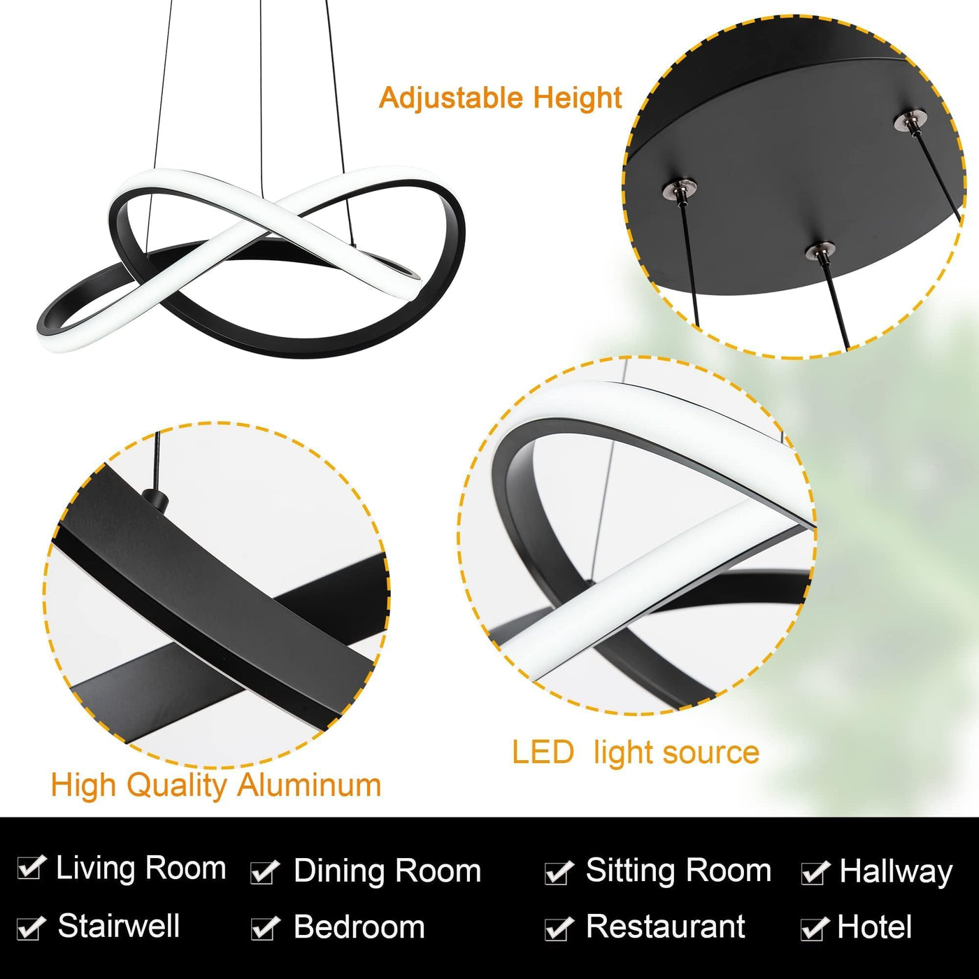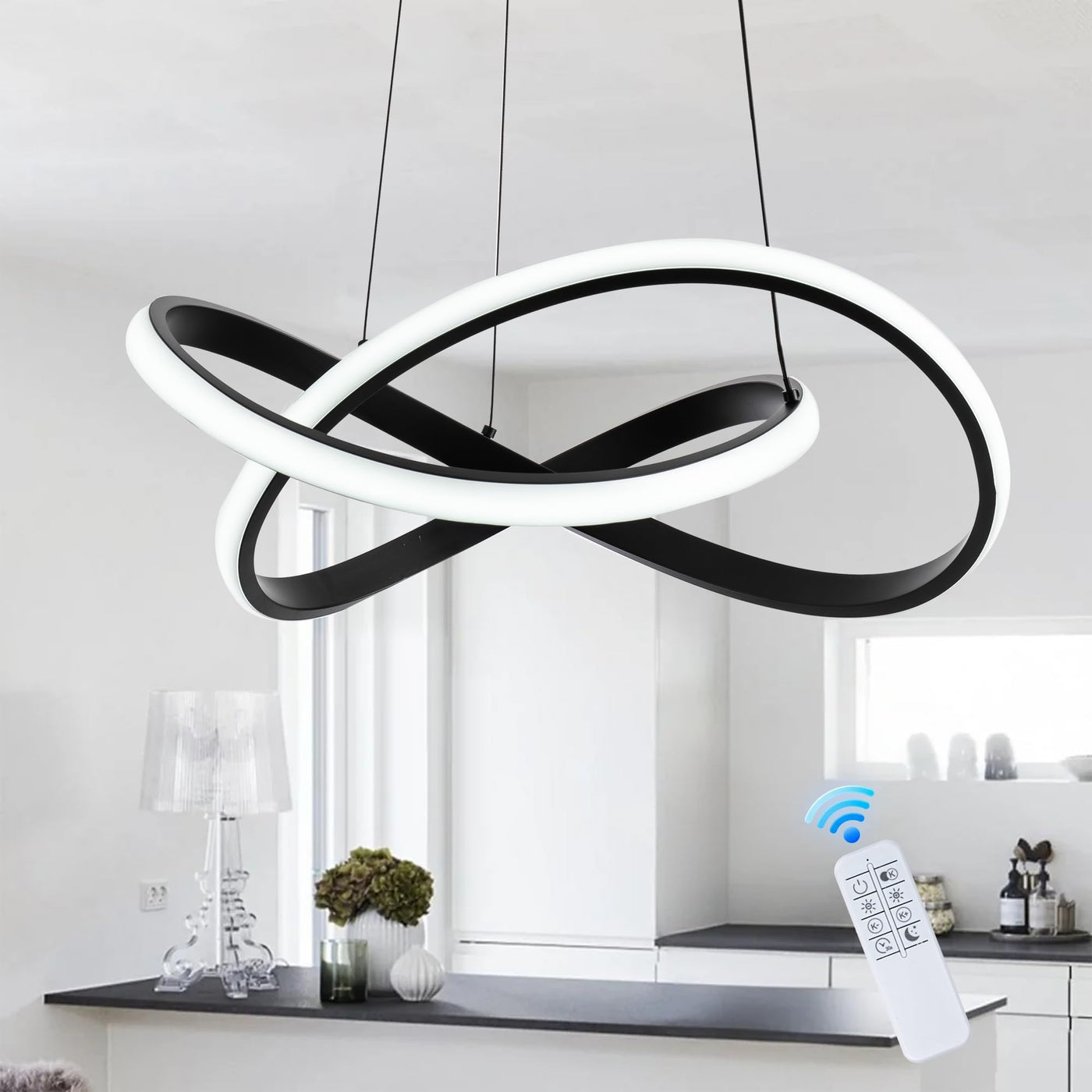 Mayna Modern Led Pendant Light Features A Unique Ring Design Sleek And Stylish. With A Remote Control You Can Adjust The Brightness And Color Temperature (3000K 4000K 6000K) And Enjoy The Intelligent Memory Function. Made From well-made Metal Aluminum And Pvc For Durability And Excellent Heat Dissipation It&Rsquo;S Perfect For Living Rooms Dining Rooms Bedrooms Kitchens And More.