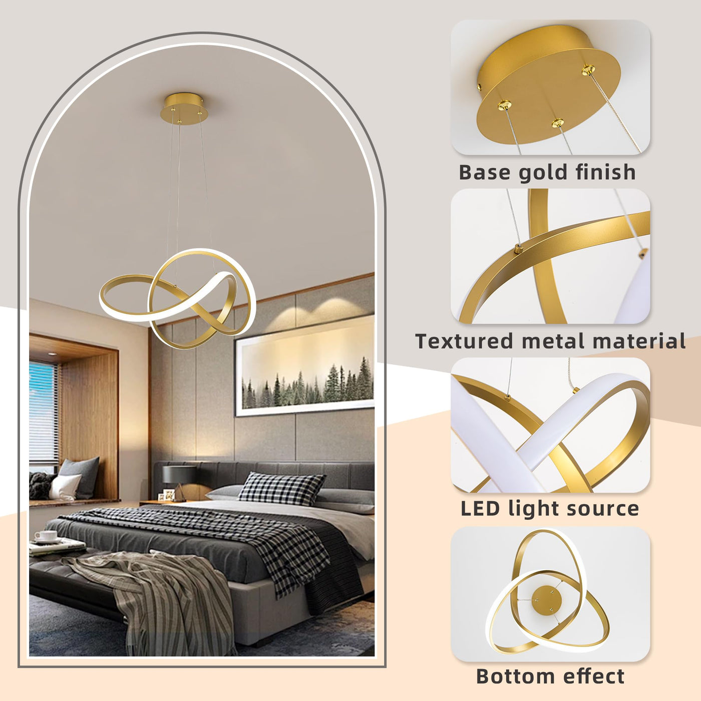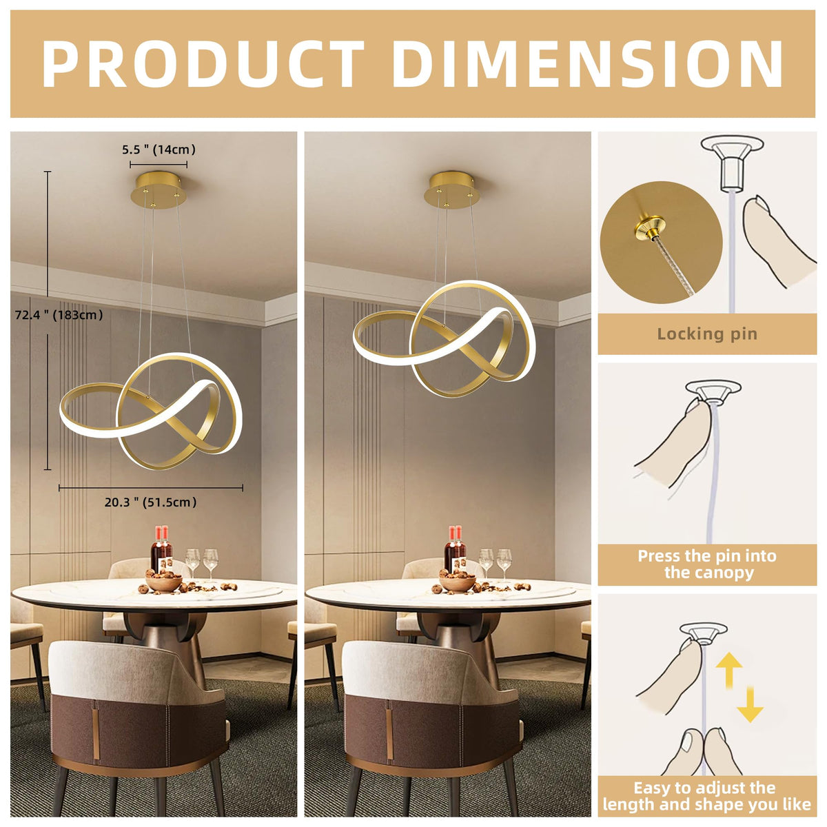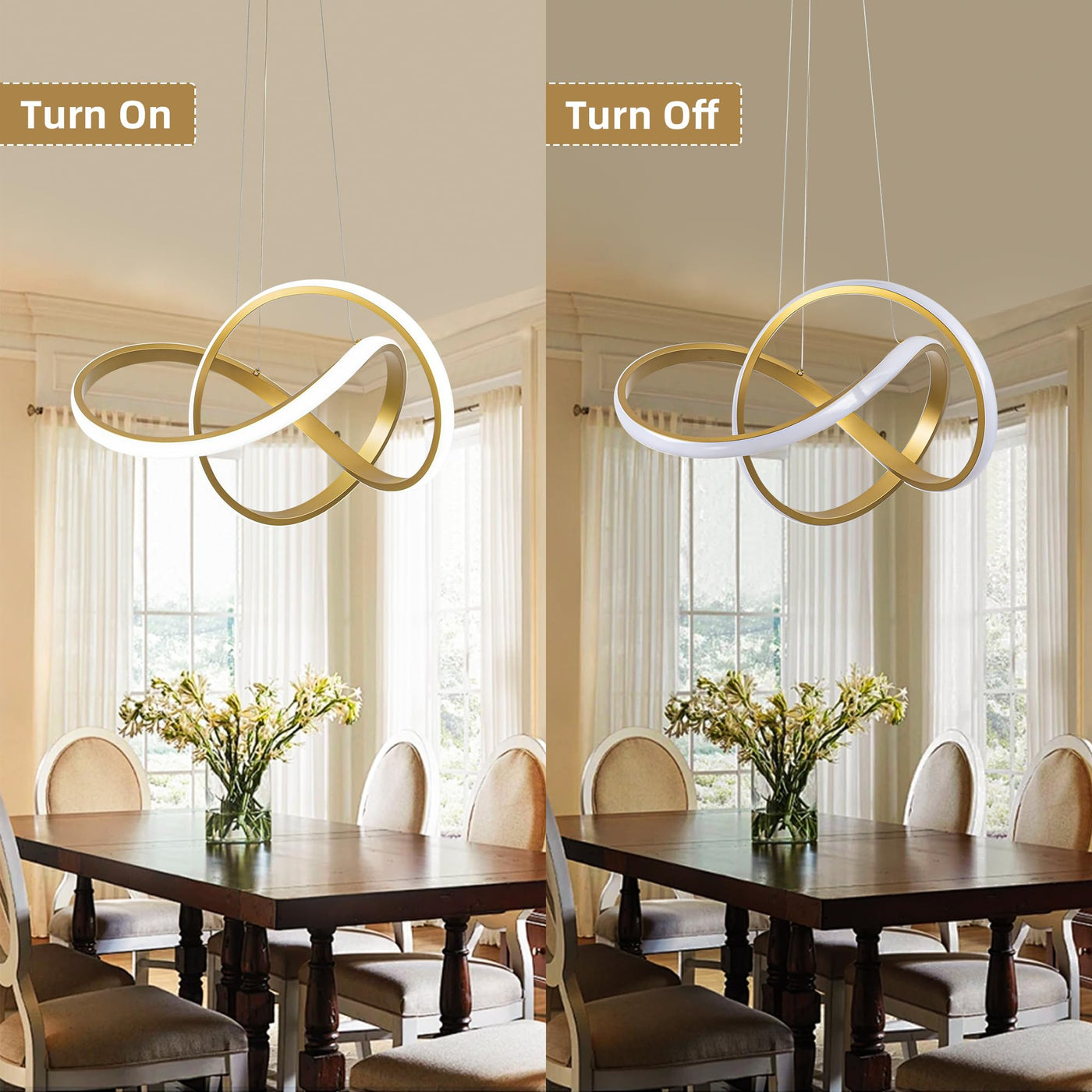 Mayna Modern Gold Led Chandelier Light Fixture Over Table, Led Pendant Light With Irregular Ring Lights, Modern Chandeliers For