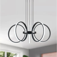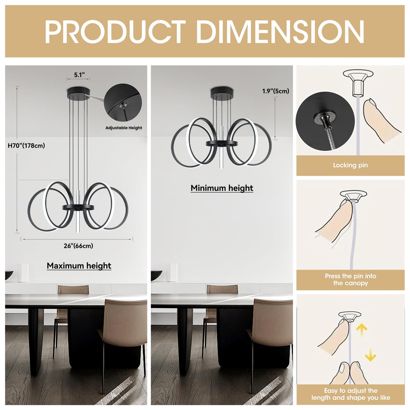 Mayna Modern Led Chandelier, Black Pendant Light With 5 Rings, Adjustable Height Modern Chandeliers For Dining Room Living Room