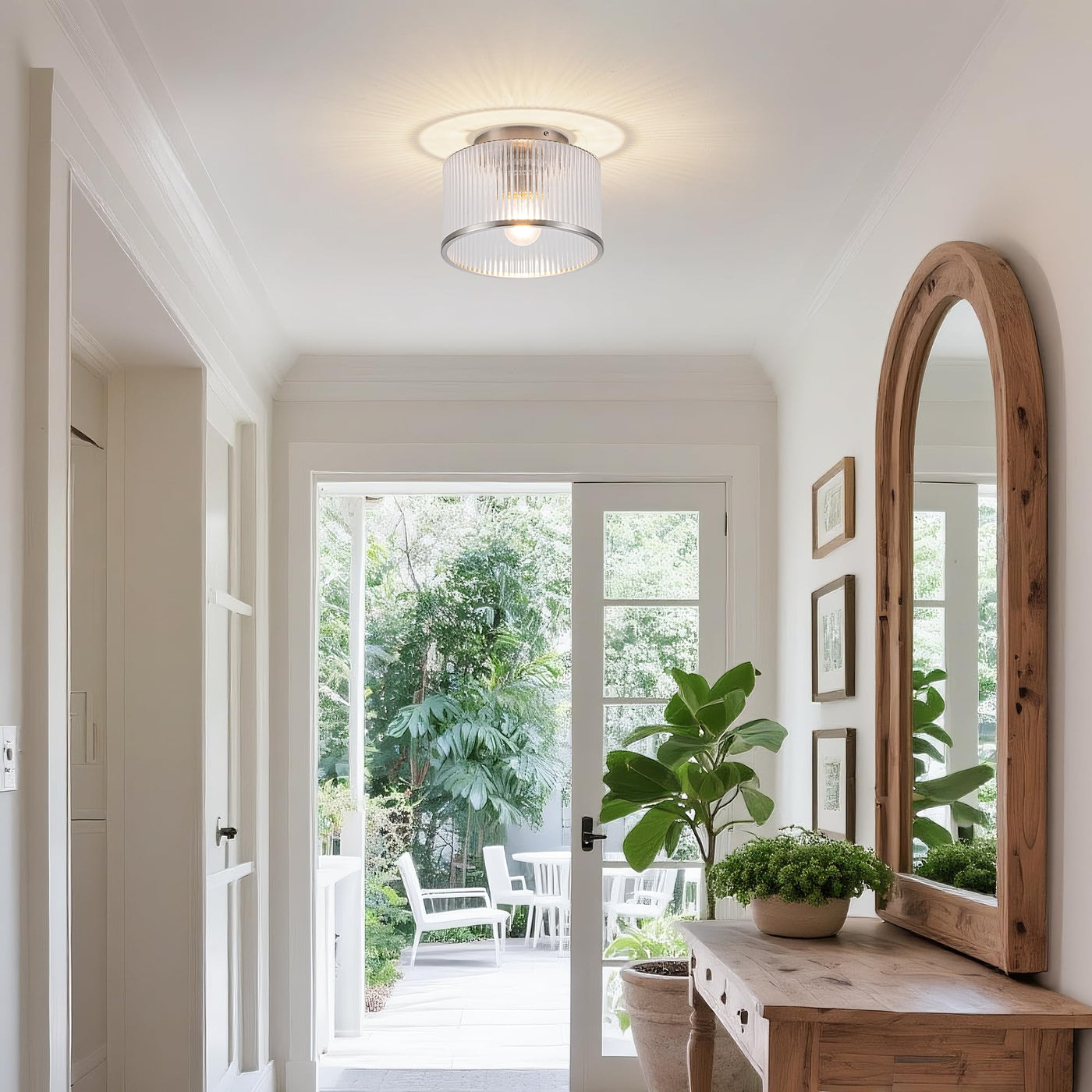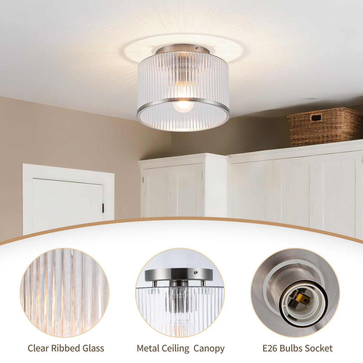 Mayna Modern Nickel Semi Flush Mount Ceiling Light Fixture, 1-Light Glass Ceiling Light, Hallway Light Fixtures Ceiling Mount Fo